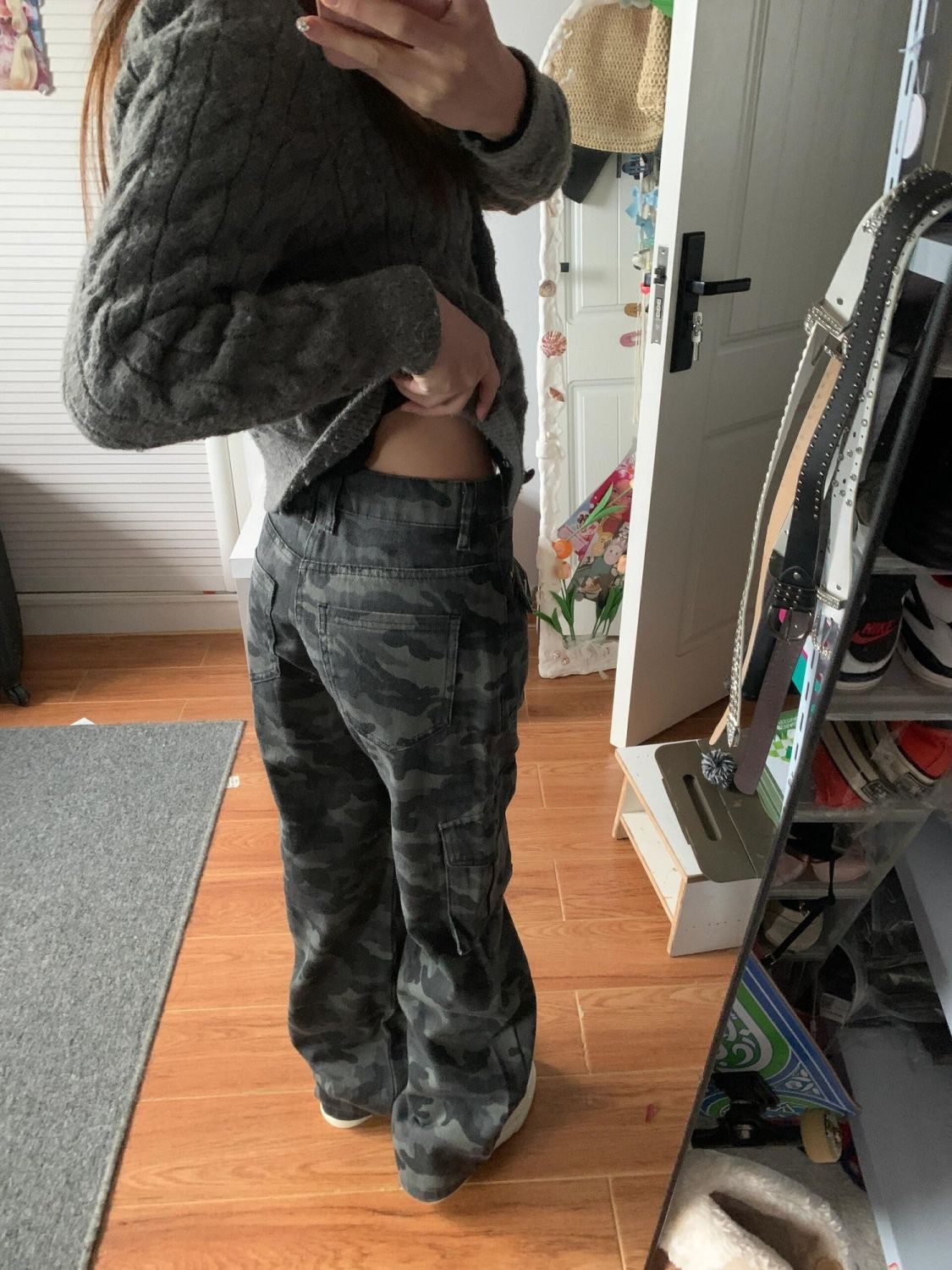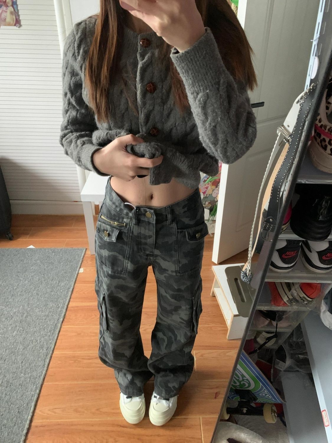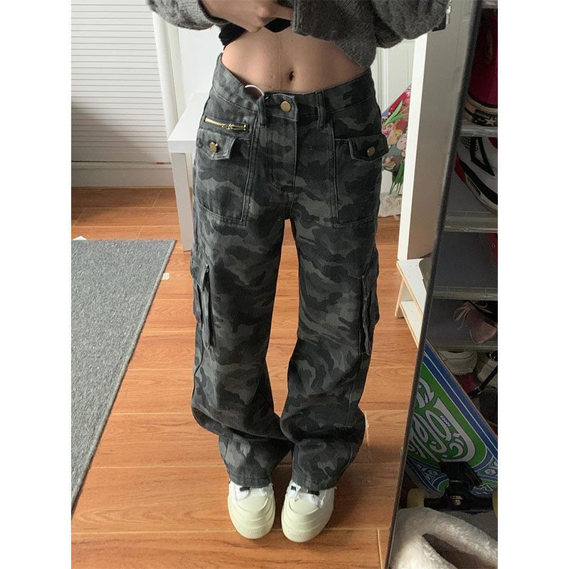 위장 디자인 센스 포켓 툴링 청바지 여성용 스파이스 걸스 하이 스트리트 하이 웨이스트 루즈 슈퍼 슬림 트렌디 와이드 레그 팬츠스토어 가기