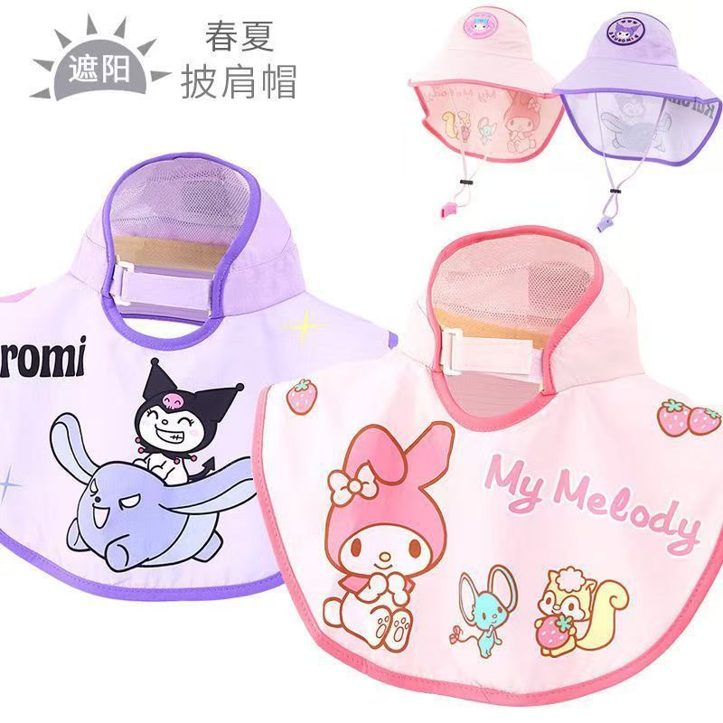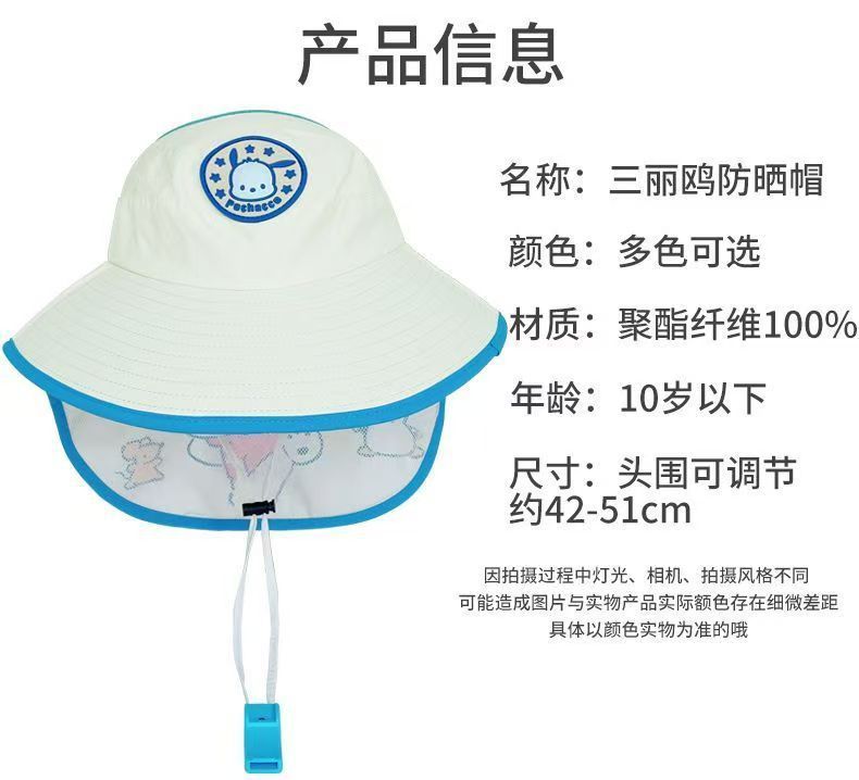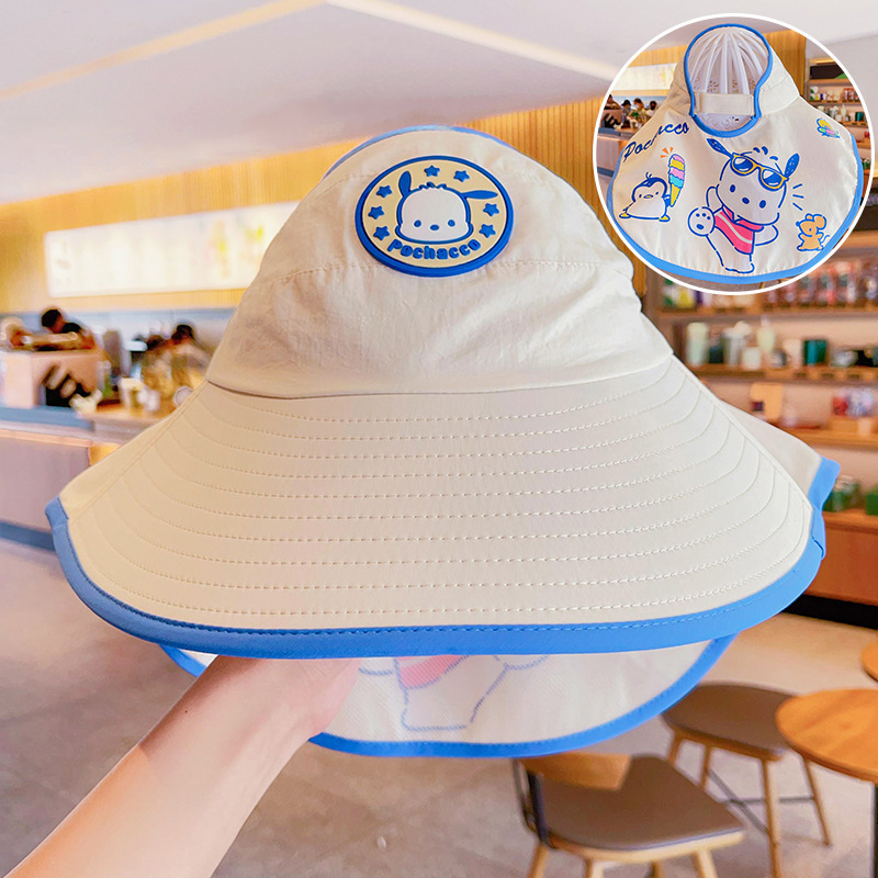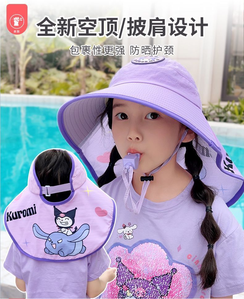 여름 야외 여행 어린이 선 스크린 모자 유치한 만화 여행 UV 보호 큰 모자 브림 목도리 목 보호 모자스토어 가기