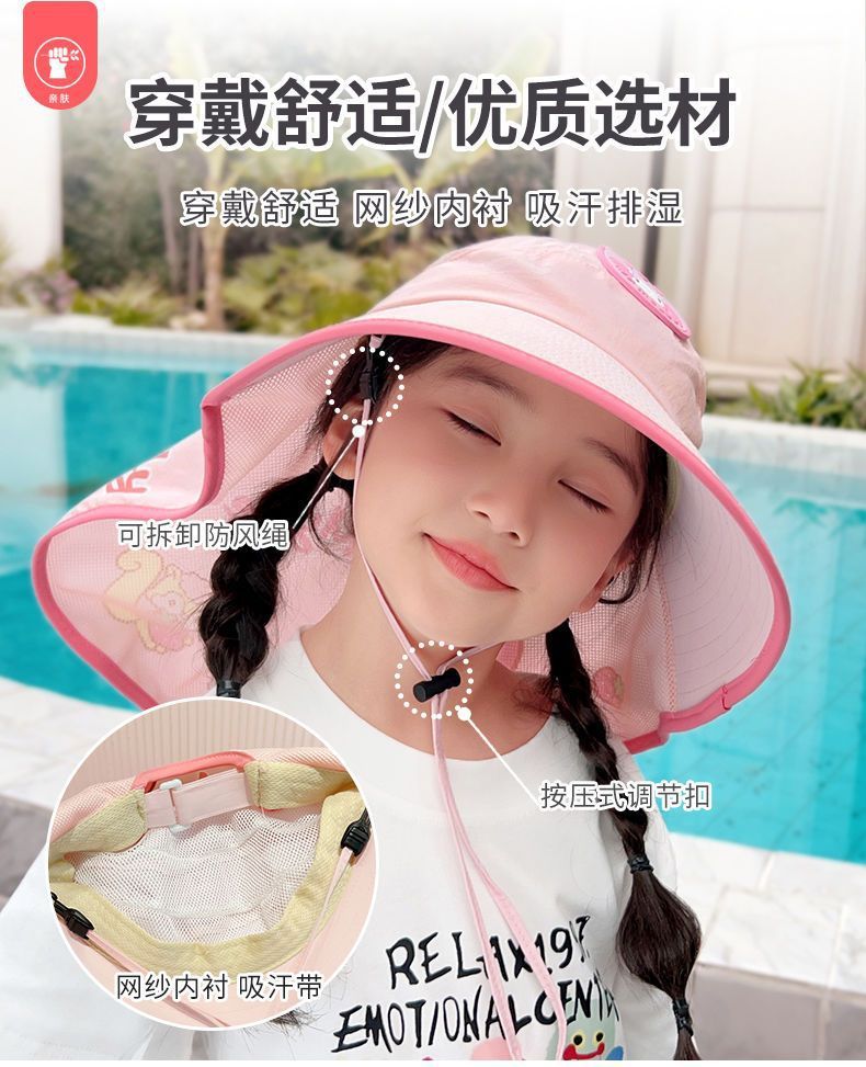 여름 야외 여행 어린이 선 스크린 모자 유치한 만화 여행 UV 보호 큰 모자 브림 목도리 목 보호 모자