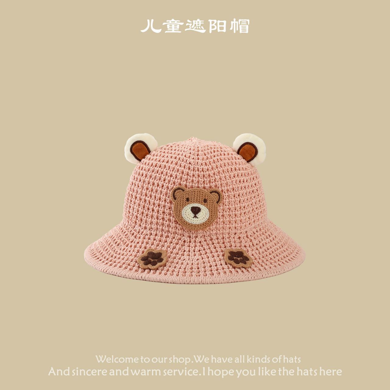 • 어린이 곰 밀짚모자--핑크색