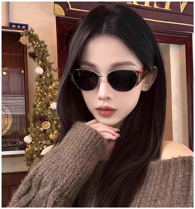 정사각형 및 둥근 얼굴을 가진 여성을 위한 고급 금속 여행 거북이 껍질 색상 선글라스, 유럽 및 미국의 핫걸을 위한 크로스보더 복고풍 고양이 눈 선글라스스토어 가기