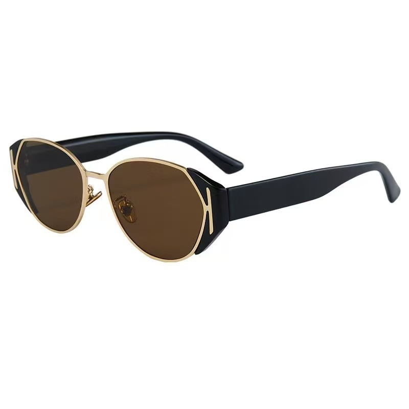 정사각형 및 둥근 얼굴을 가진 여성을 위한 고급 금속 여행 거북이 껍질 색상 선글라스, 유럽 및 미국의 핫걸을 위한 크로스보더 복고풍 고양이 눈 선글라스