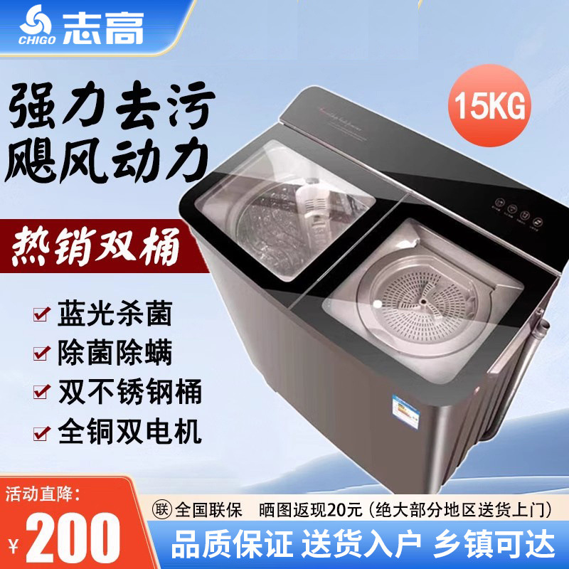치고 15/18kg 더블 배럴 반자동 세탁기 소형 가구 임대 아파트 20/50kg 대용량