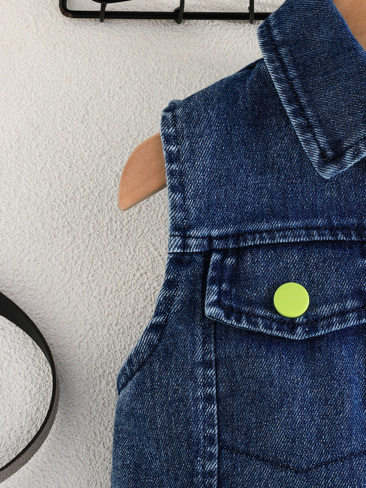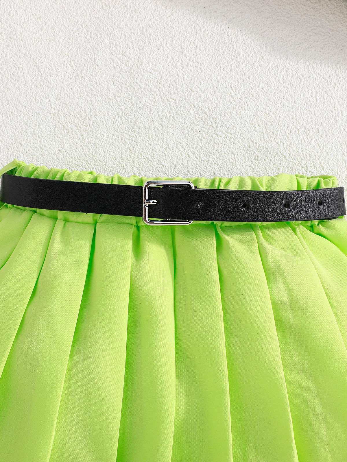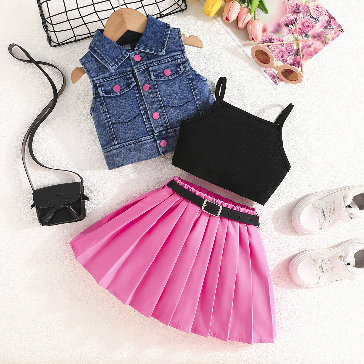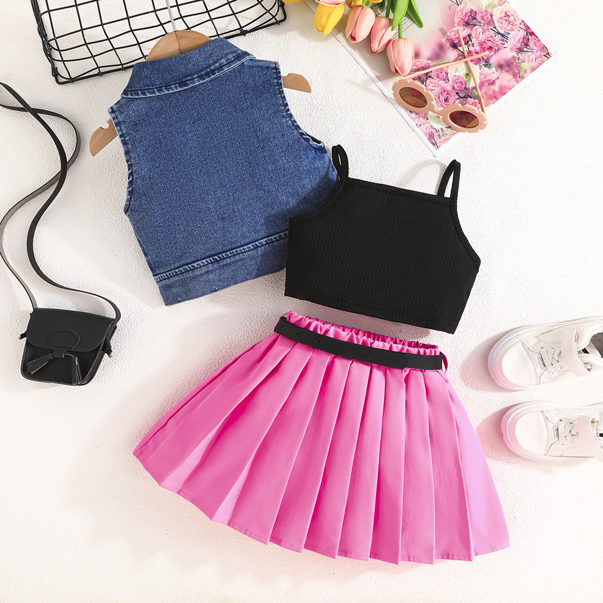 국경 간 신제품 여름 소녀 데님 조끼 탑 + 서스펜더 속옷 + 녹색 100% off 스커트 + 벨트 4 피스 세트
