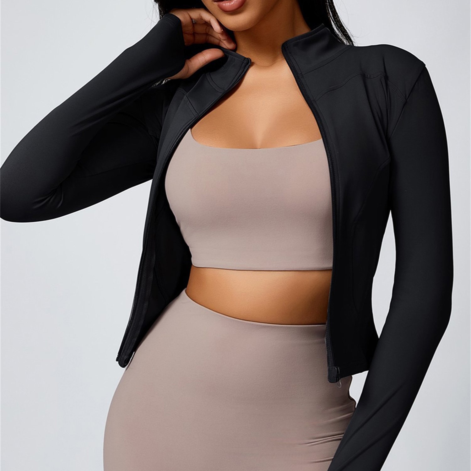 여성용 운동 재킷 솔리드 컬러 속건성 경량