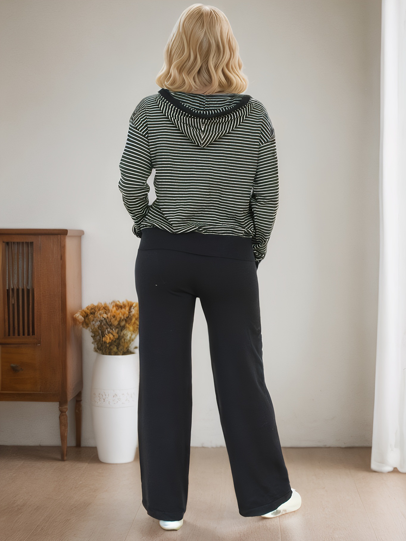 1세트 여성 캐주얼 비스코스 니트 스트라이프 후드 탑스토어 가기