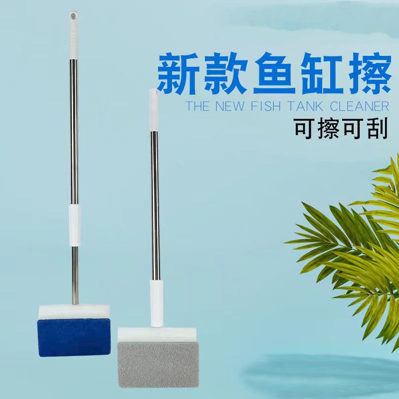 스테인레스 스틸 텔레스코픽 물고기 탱크 브러시 긴 손잡이 해조류 제거 수족관 유리 스크러빙 도구 360도 청소스토어 가기