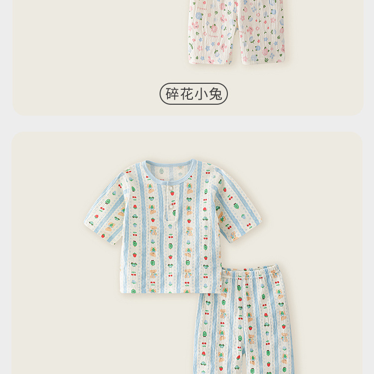 여름 얇은 주름진 면화 아기 순면 에어컨 의류 세트 스플릿 잠옷 소년과 소녀 7부 소매 가정 의류스토어 가기