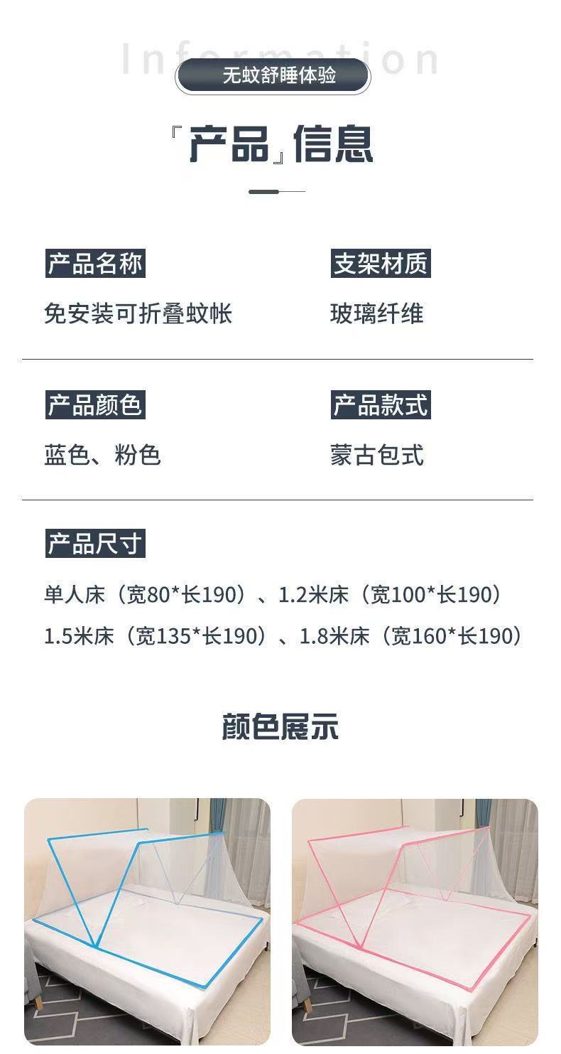 모기장 접이식 모기장 학생 기숙사 무료 설치 모기장 가정용 1.8m 침대 더블 도어 어린이 모기장스토어 가기