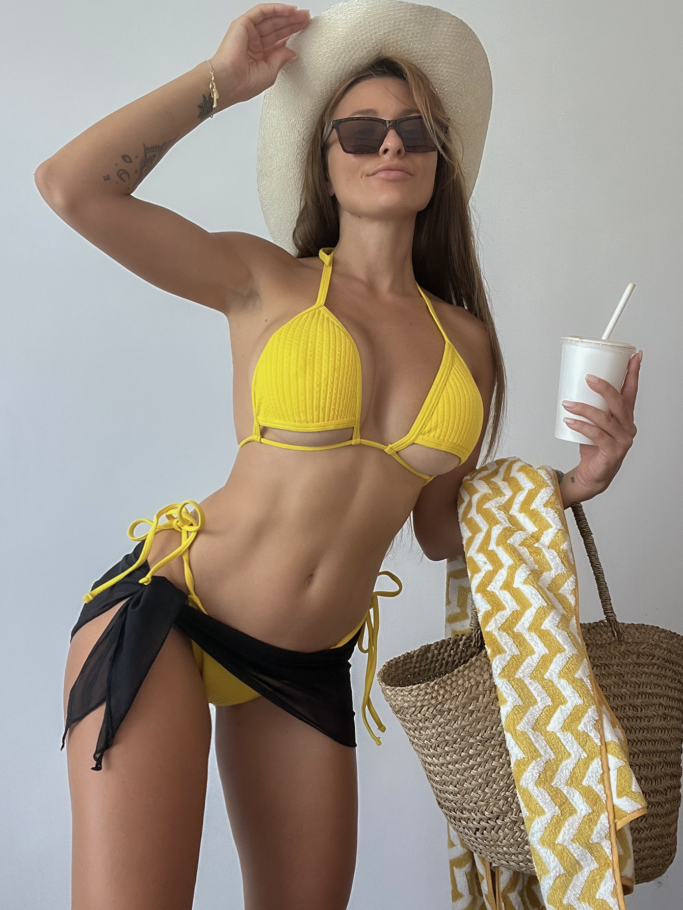 국경 간 인기 있는 대외 무역 니트 레이스 업 스플릿 수영복 3피스 쉬폰 섹시한 비키니 세트