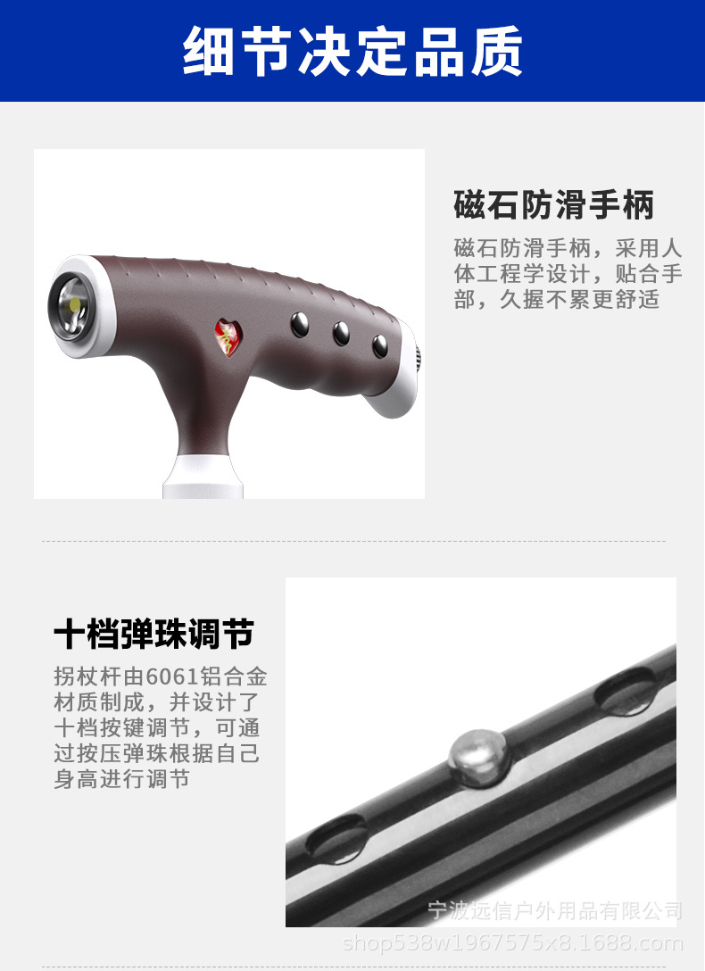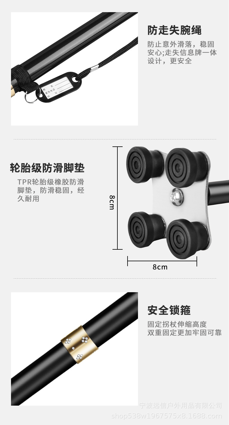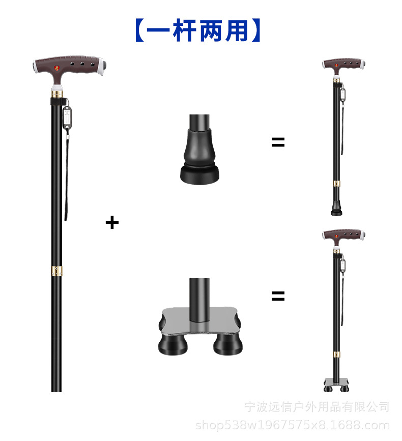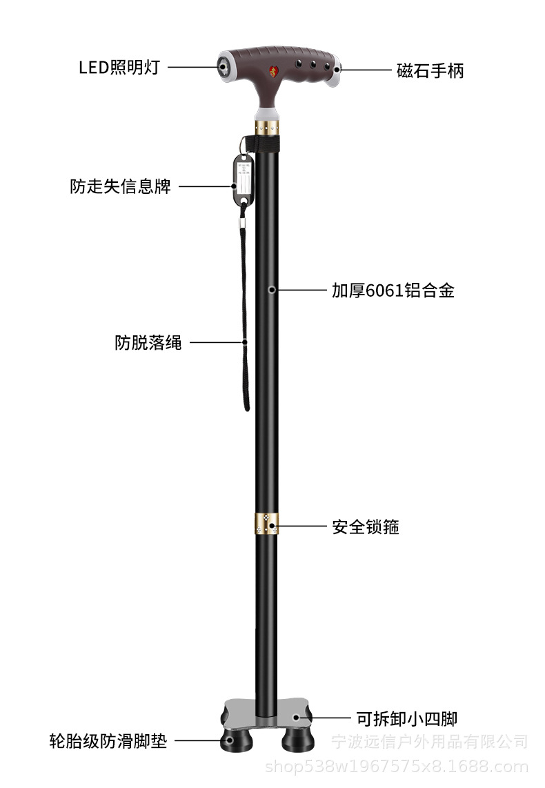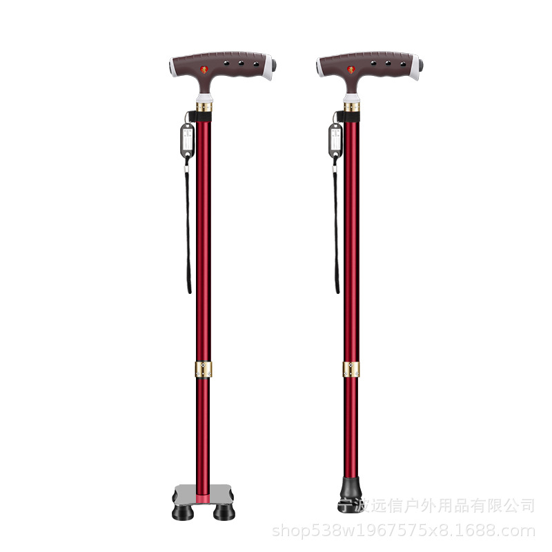 노인을 위한 조명이 달린 알루미늄 합금 지팡이, 효도 자석, 단일 발 고정, 4개의 다리, 2개의 다목적 지팡이, 접이식 지팡이