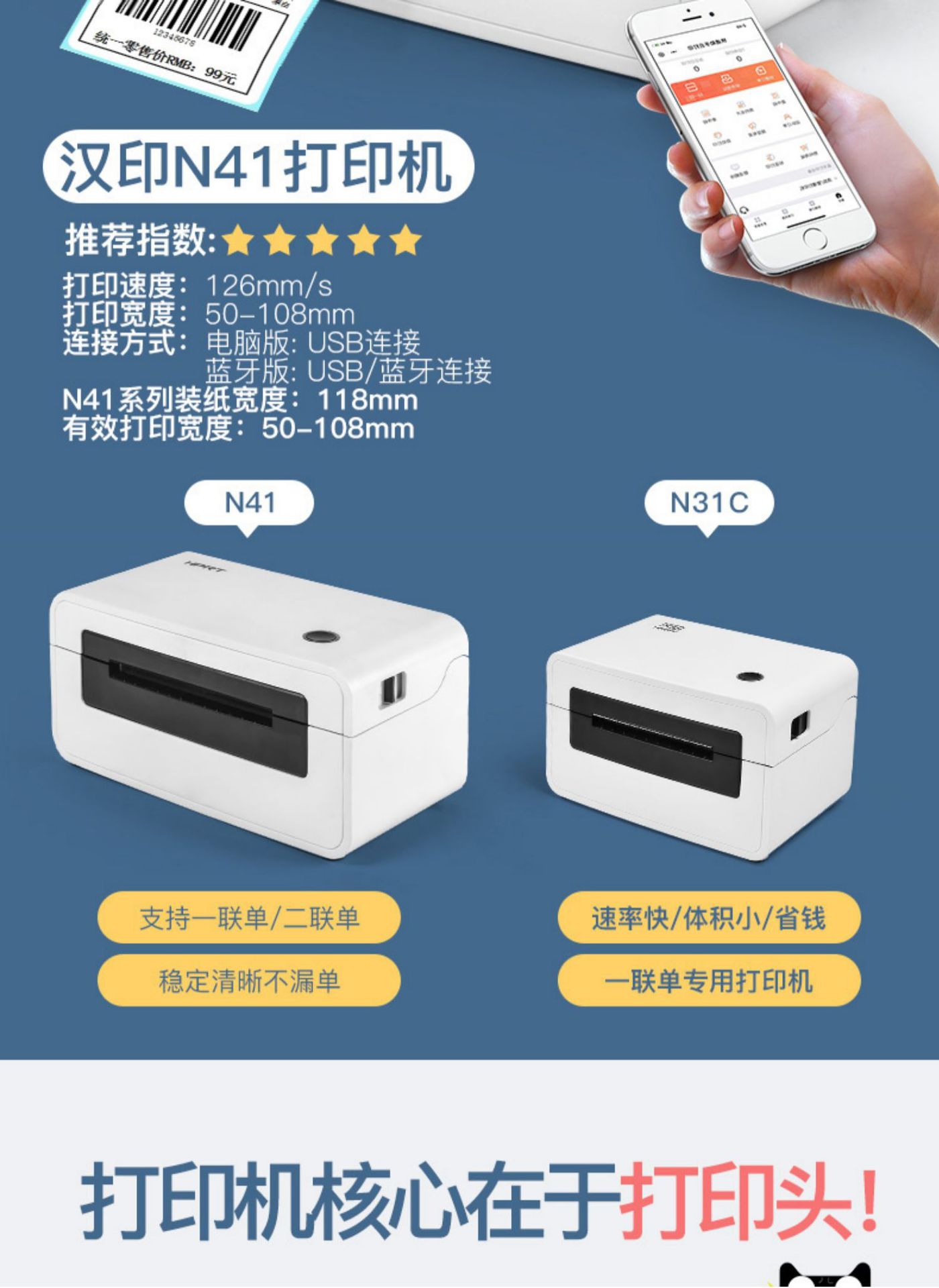 ✅ 익스프레스 프린터 블루투스 범용 한인 열전사 라벨 프린터 바코드 전자 송장 소형 라벨 프린터