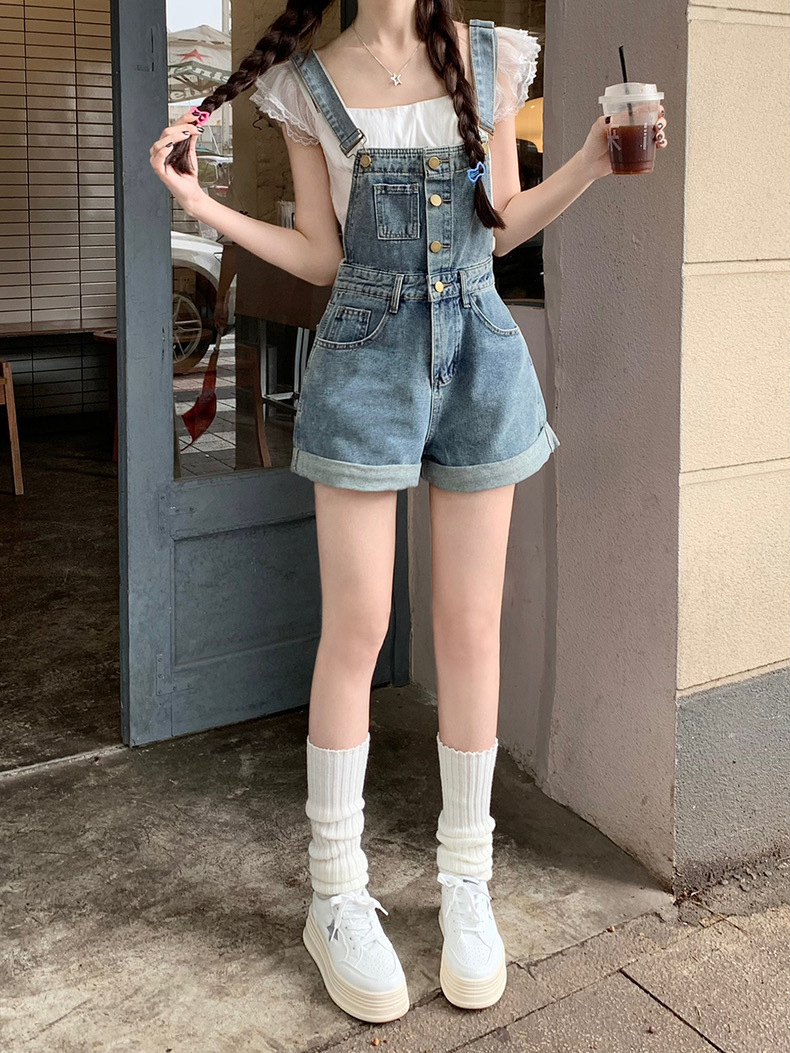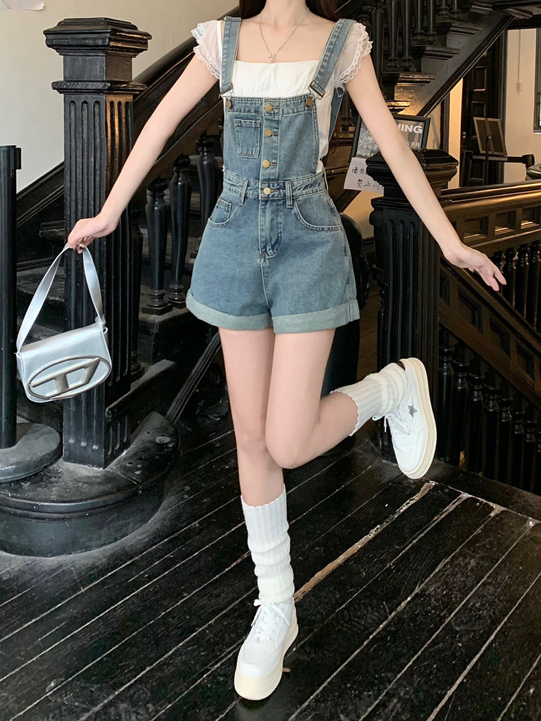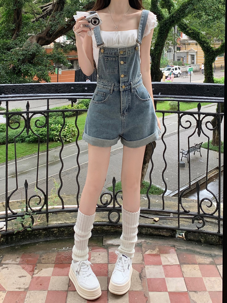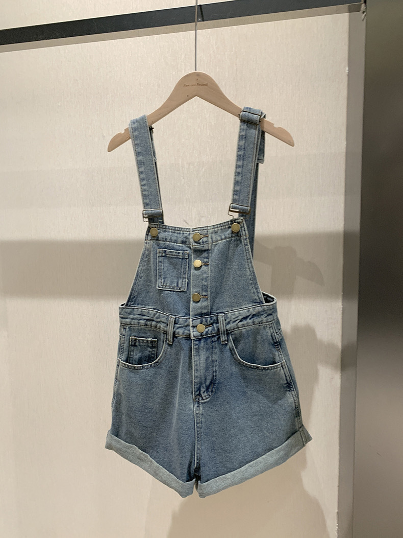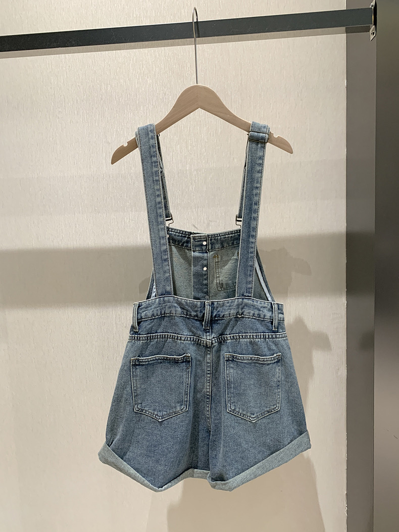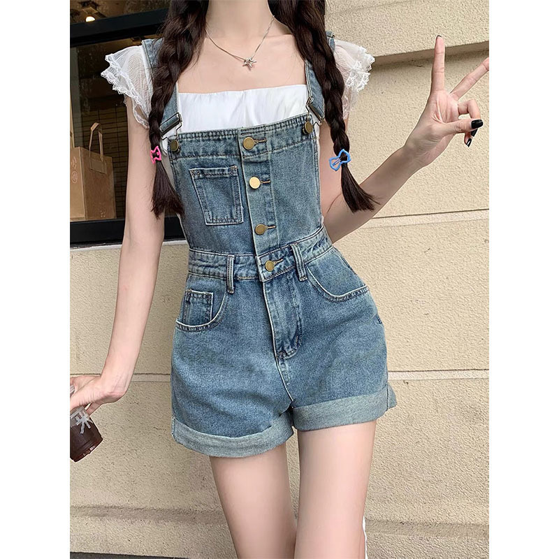 여성용 하이 웨이스트 데님 작업복 반바지 2024 뉴 여름 루즈 슬리밍 디자인 스트레이트 컬링 원피스 핫팬츠
