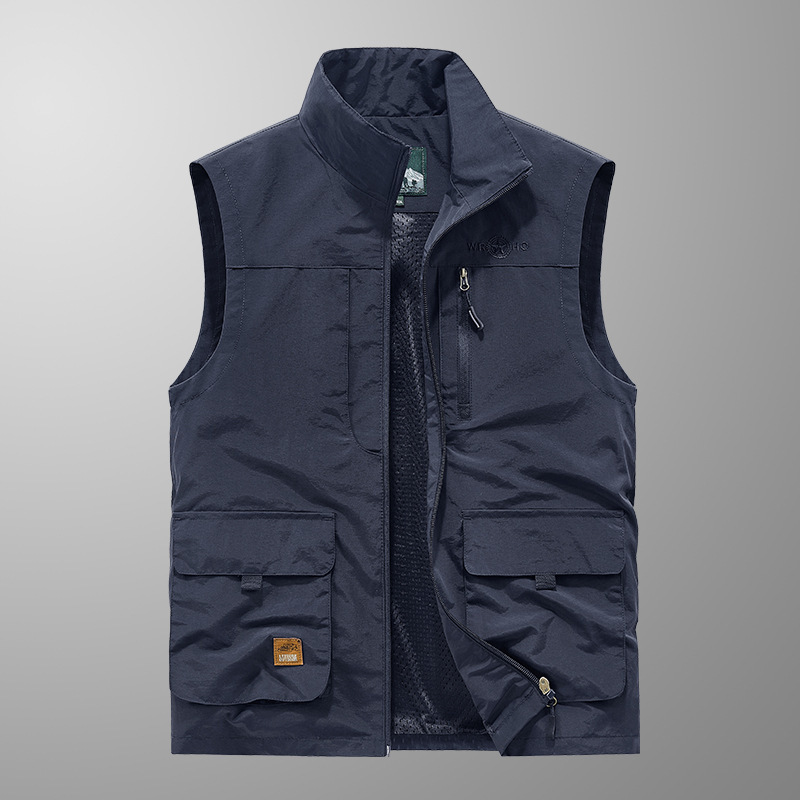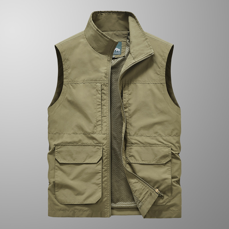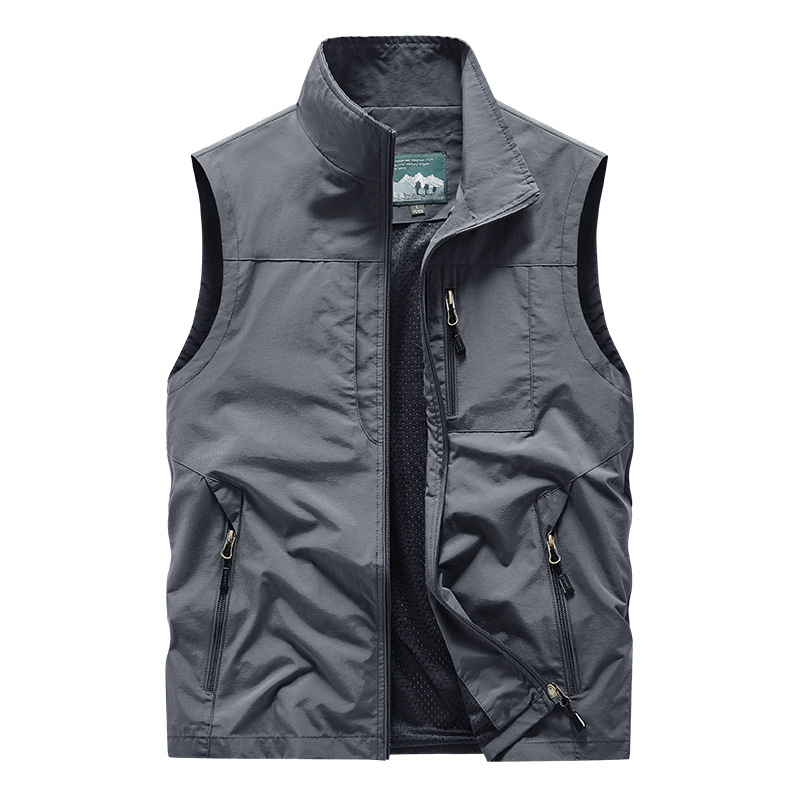 낚시 및 등산 스탠드 칼라 조끼 조끼 속건성 방수 남성용 야외 레저 봄 여름 사진 메쉬 작업복