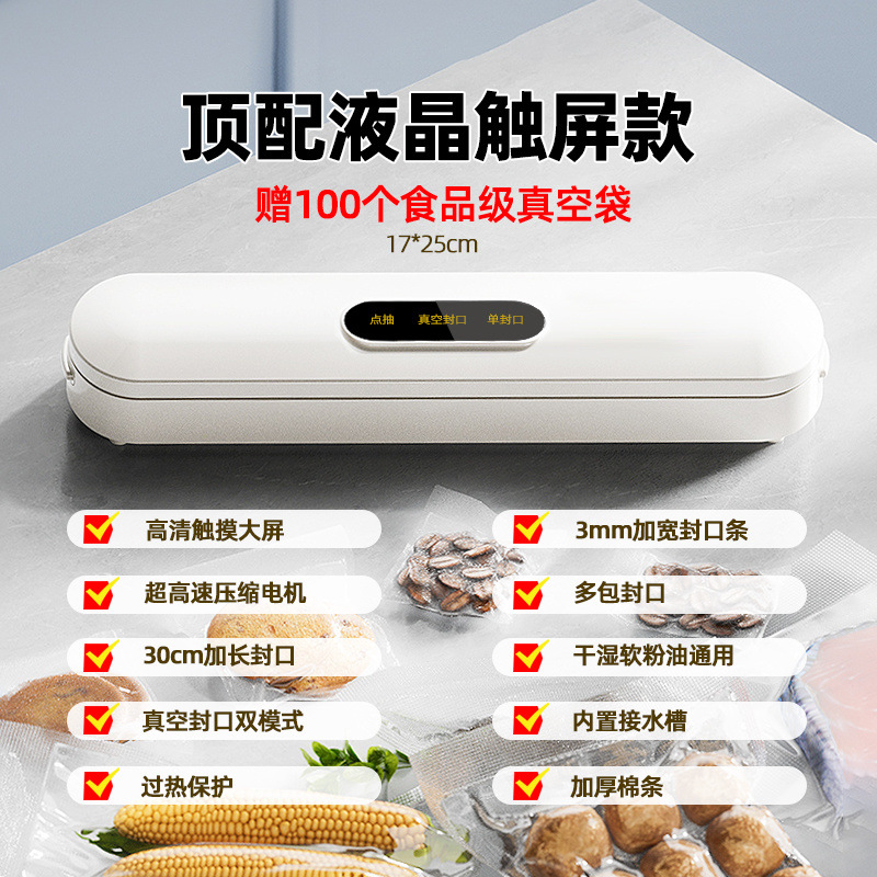 • 대형 LCD 화면 + 무료 식품 진공백 100개 장착