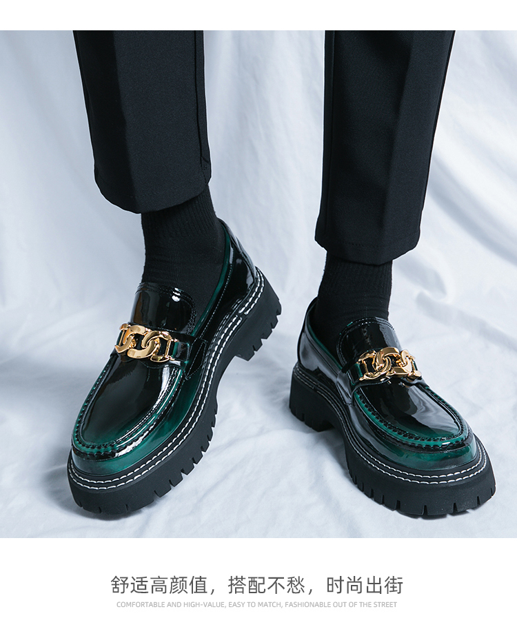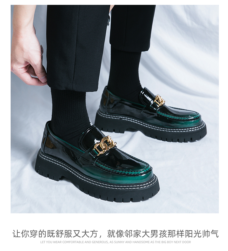 남성용 가죽신발, 영국식, 키높이, 두꺼운 밑창, 트렌디한 광택, 슬립온, 캐주얼 로퍼스토어 가기