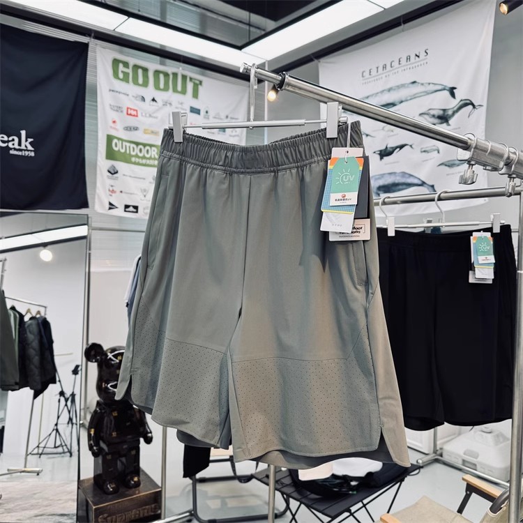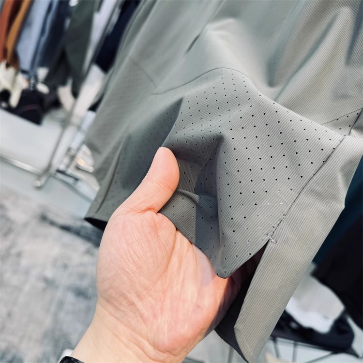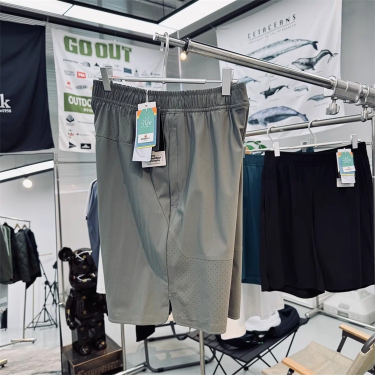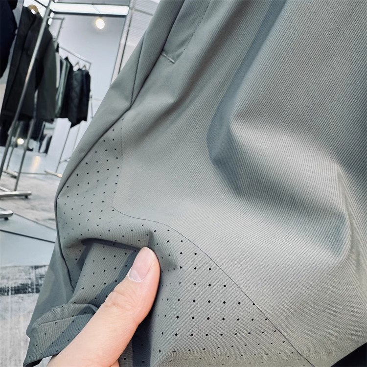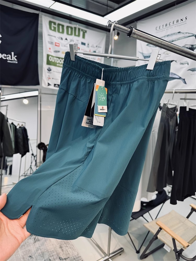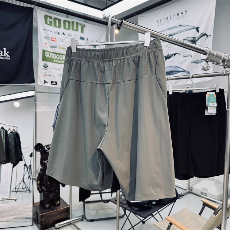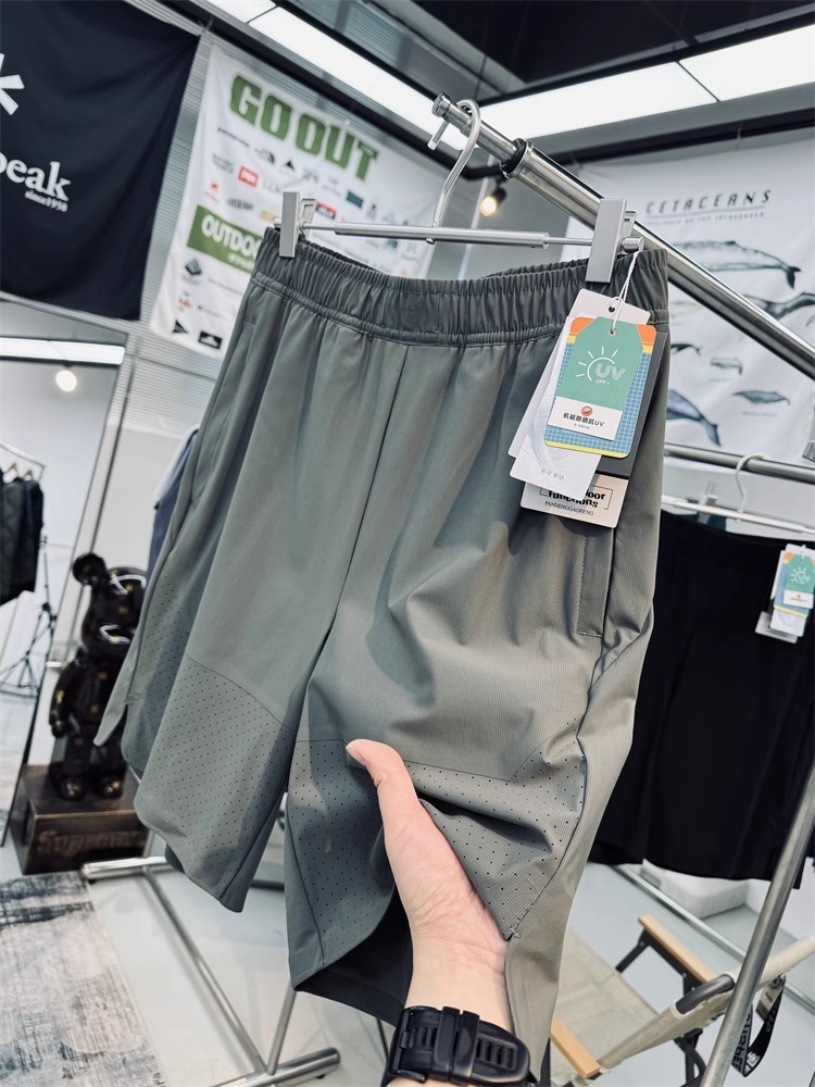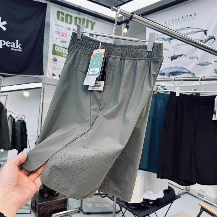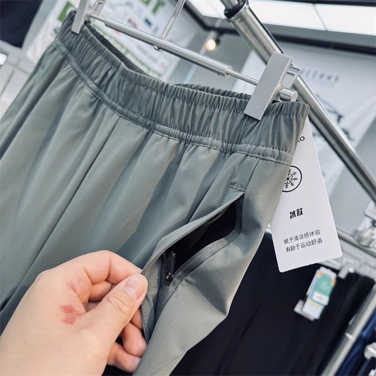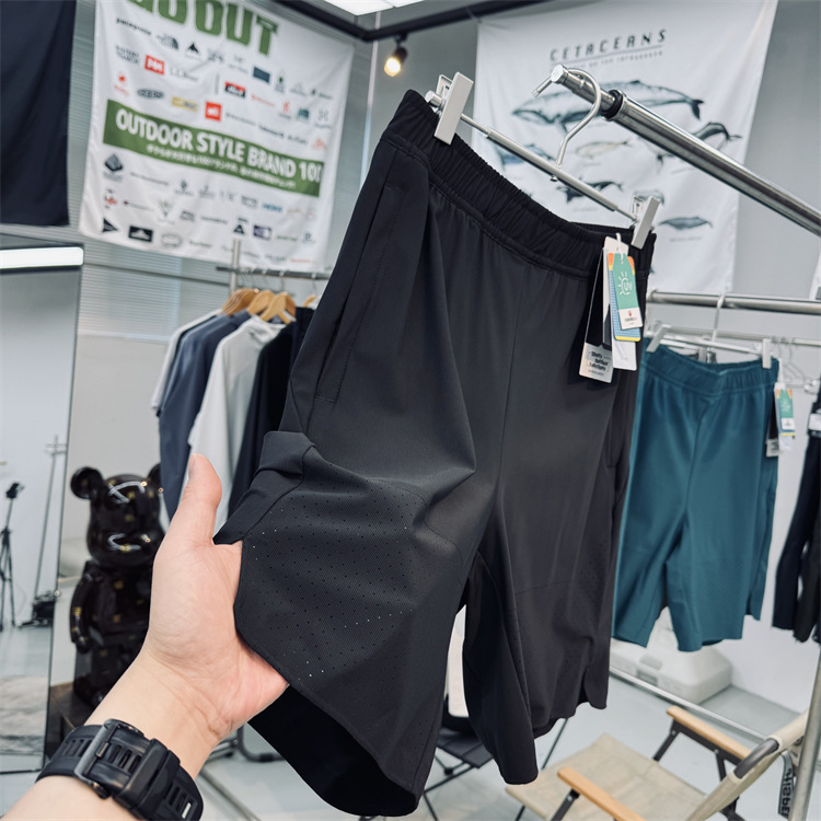 아이스 실크 앤 스트립 여름 남자 스포츠 반바지 레이저 천공 원활한 빠른 건조 바지 아이스 센스 스트레치 바지 중간 바지스토어 가기