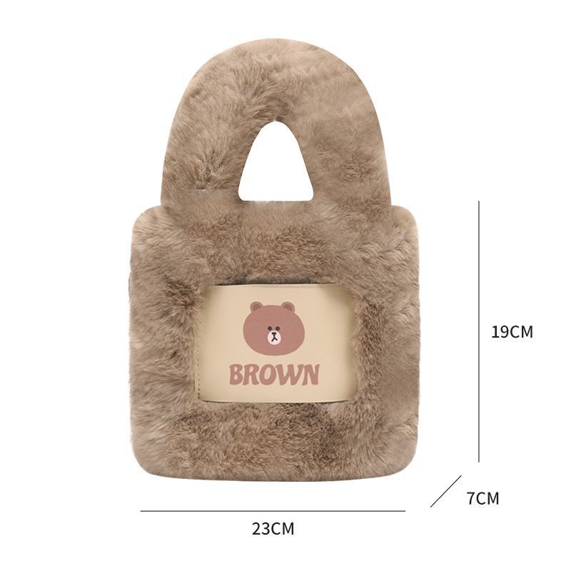 사카니와 공동 브랜드 플러시 백 캐주얼 통근 수납 플러시 백 핸드백 크로스 바디 백 겨울 귀여운