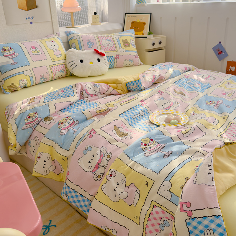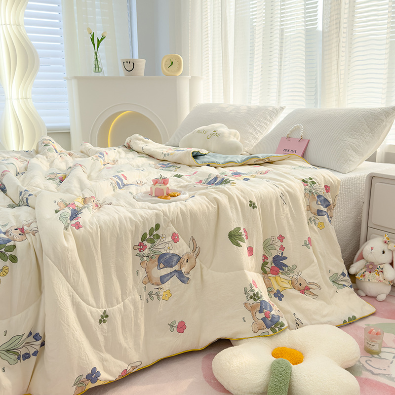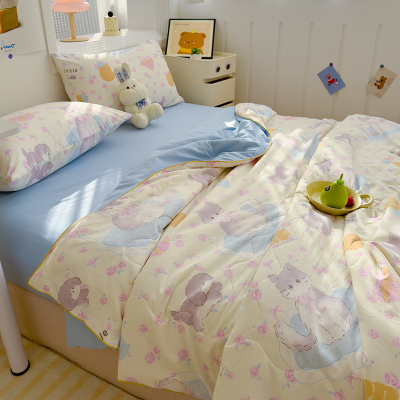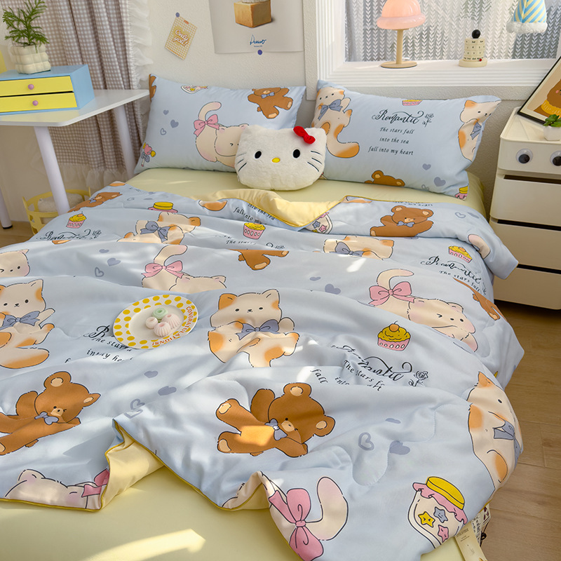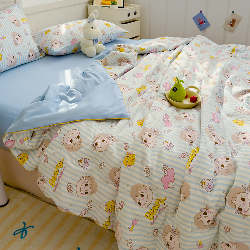 클래스 A 세척 가능한 이중 원사 콩 섬유 여름 이불 만화 여름 에어컨 얇은 이불 선물 여름 이불 기계 세탁 가능스토어 가기