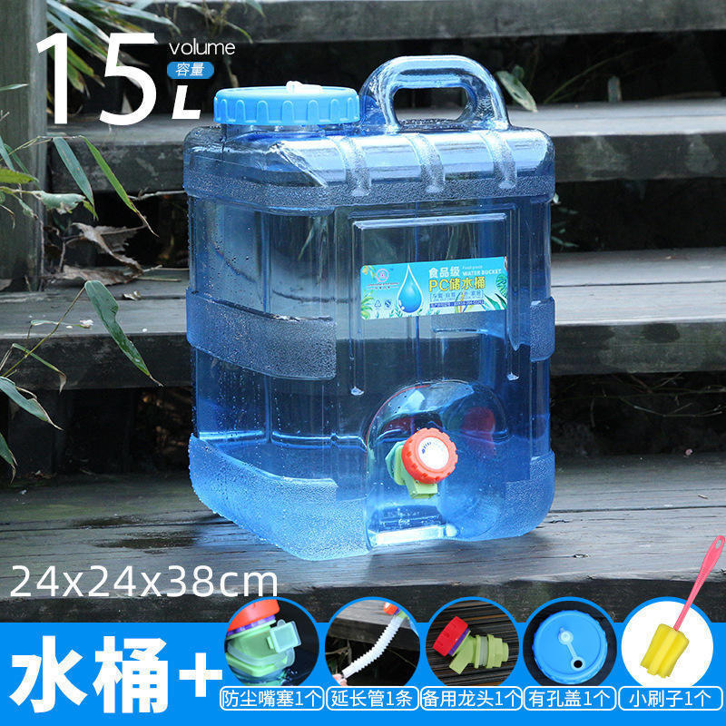 뚜껑이 있는 야외 순수 물통, 식품 등급 가정용 물 저장 미네랄 물통, 수도꼭지가 있는 자동차 물 저장 물통