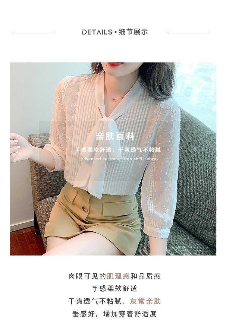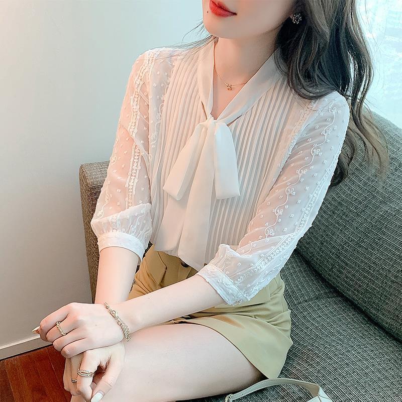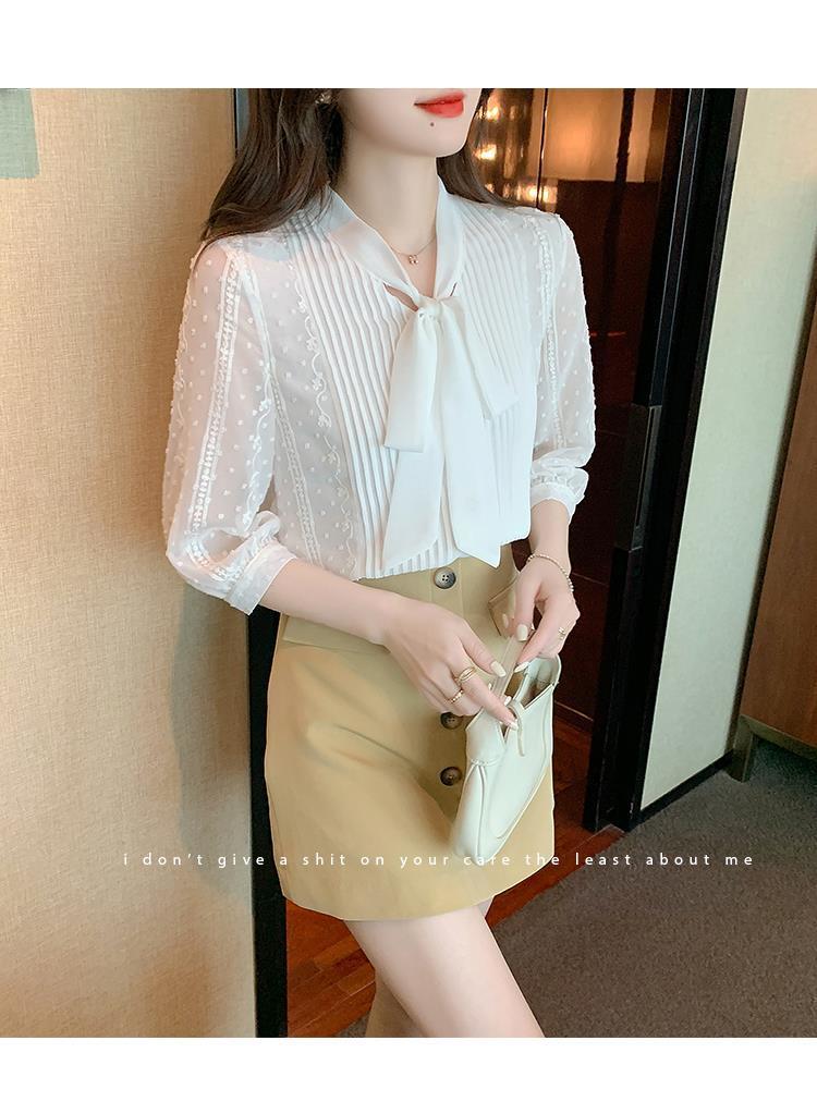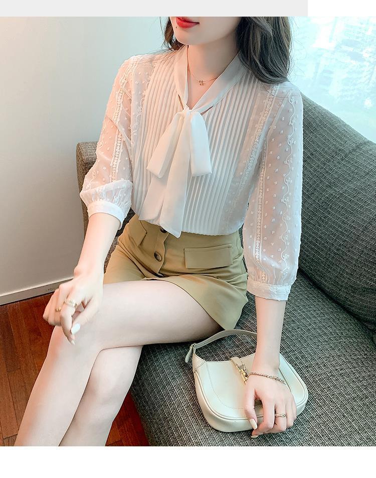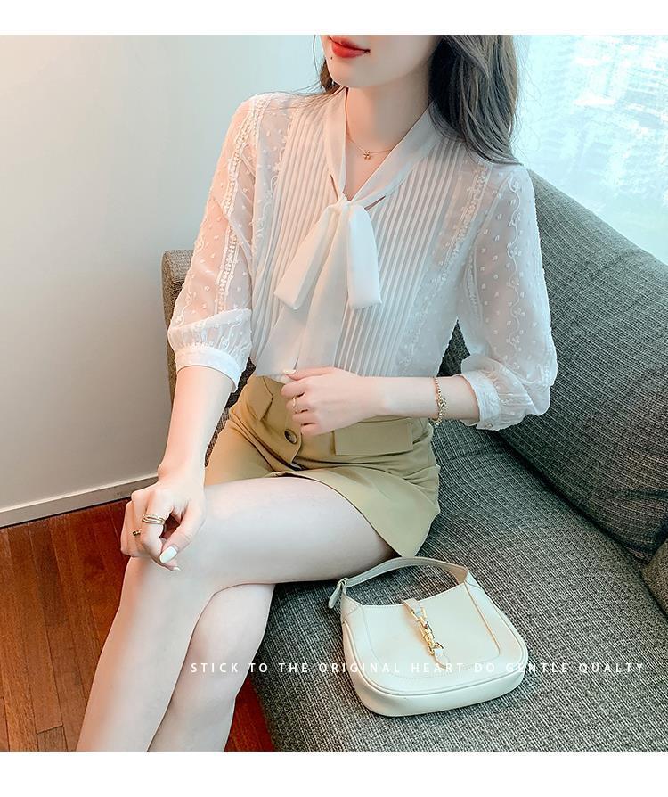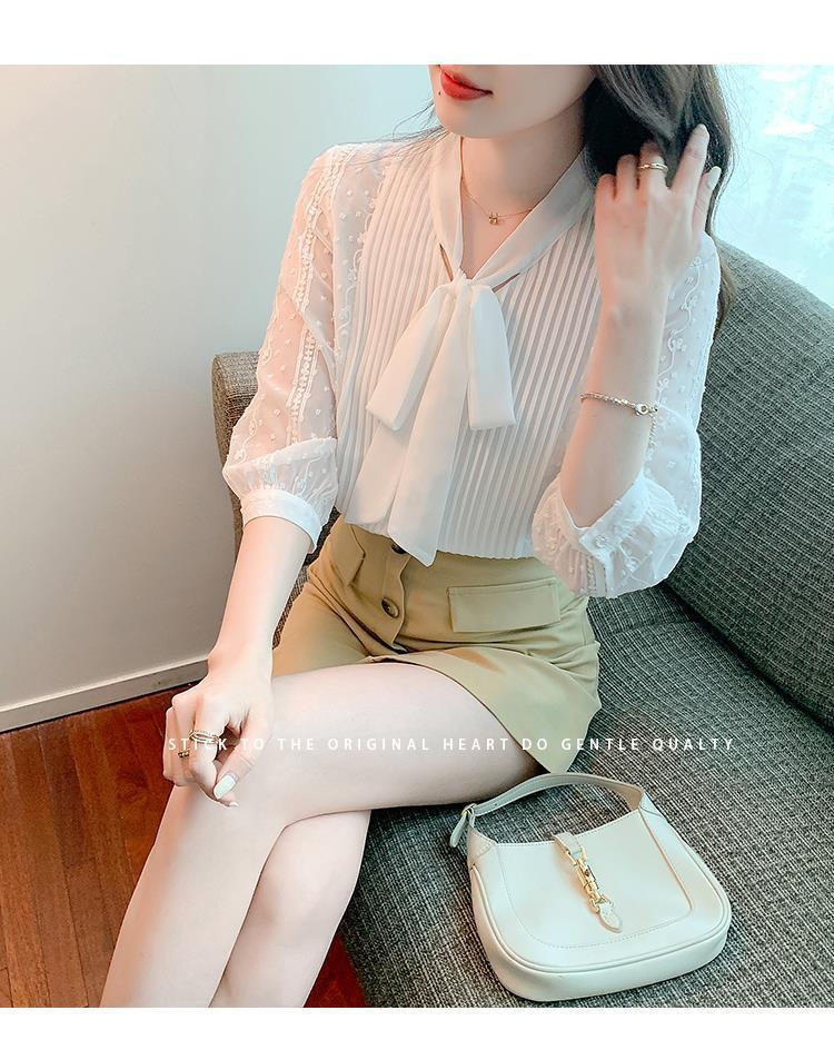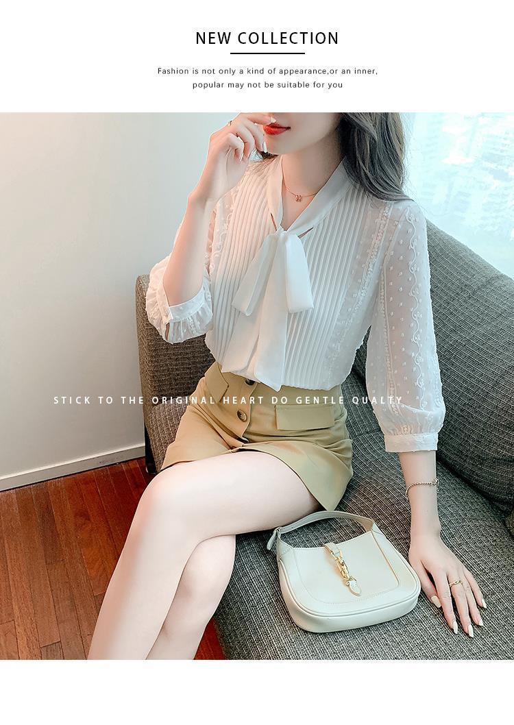 화이트 쉬폰 셔츠 여성 여름 얇은 2025 여름 새로운 스타일 서양식 셔츠 7부 반팔 v 넥 탑스토어 가기