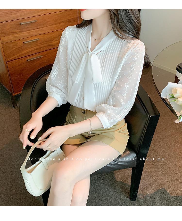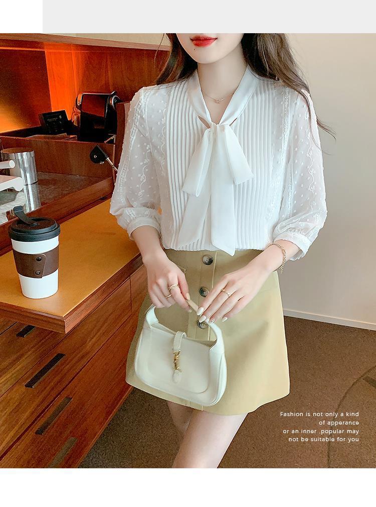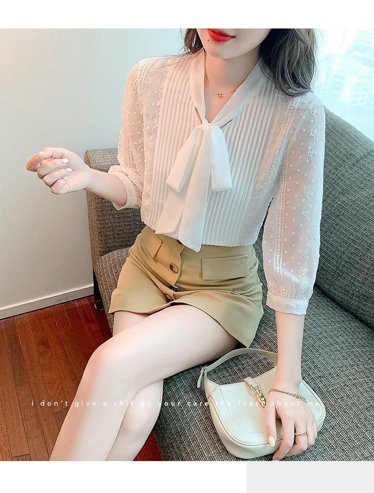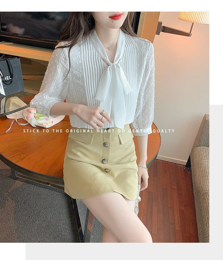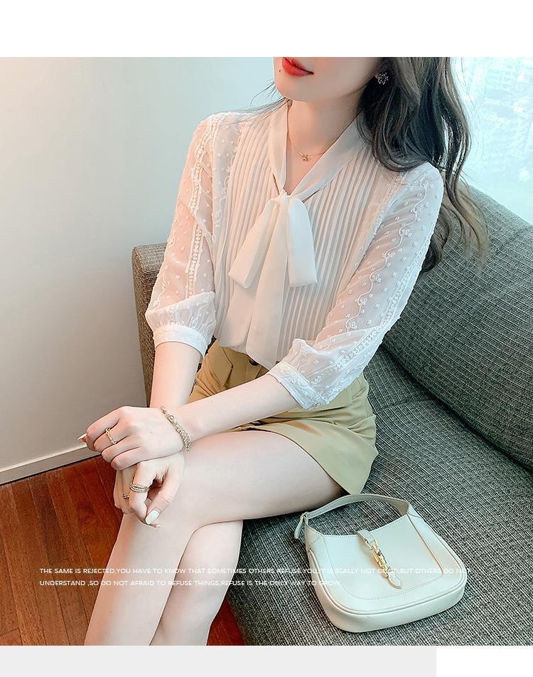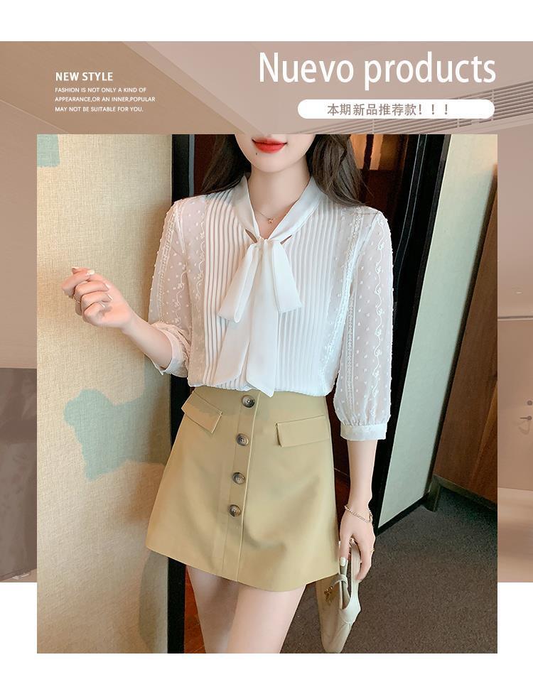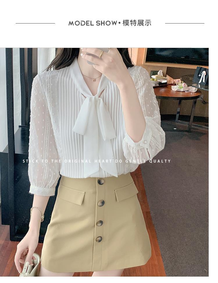 화이트 쉬폰 셔츠 여성 여름 얇은 2025 여름 새로운 스타일 서양식 셔츠 7부 반팔 v 넥 탑스토어 가기