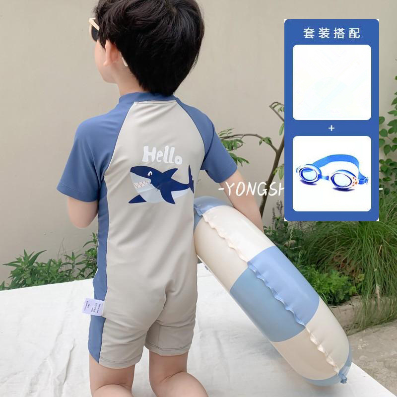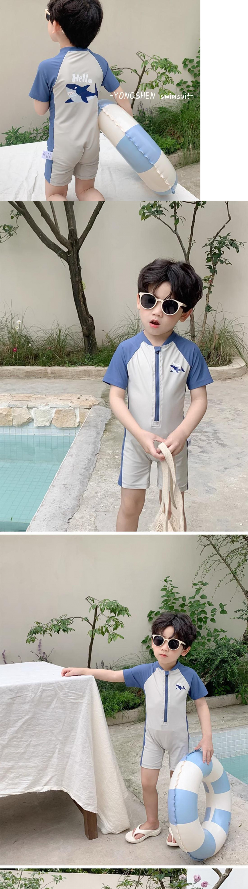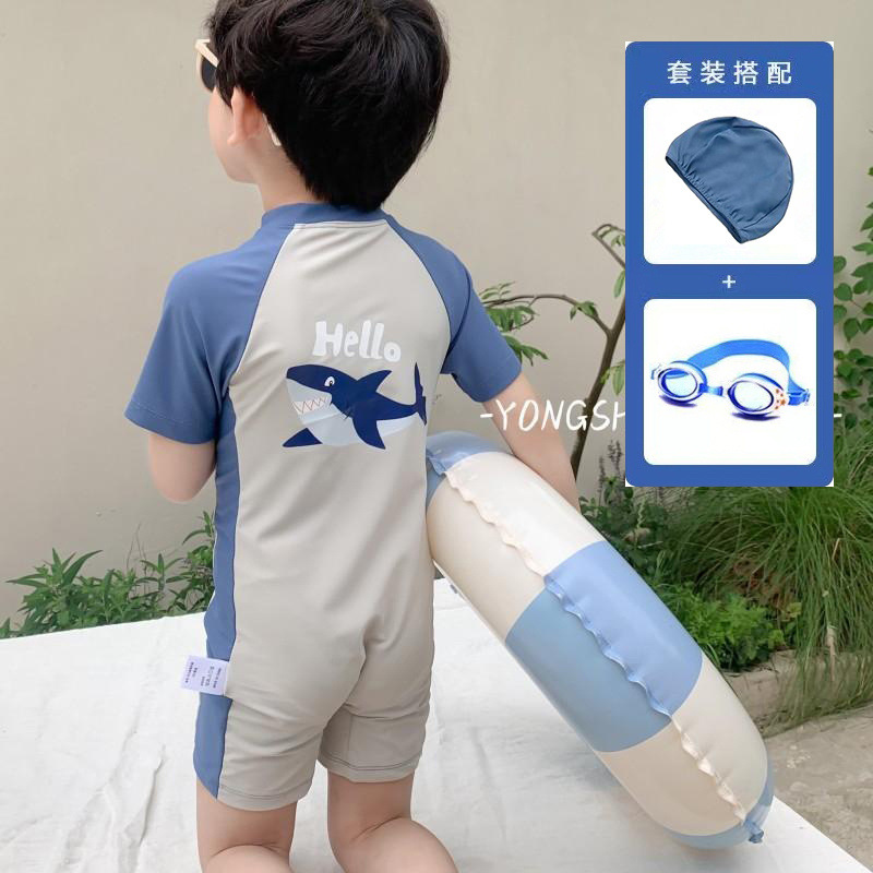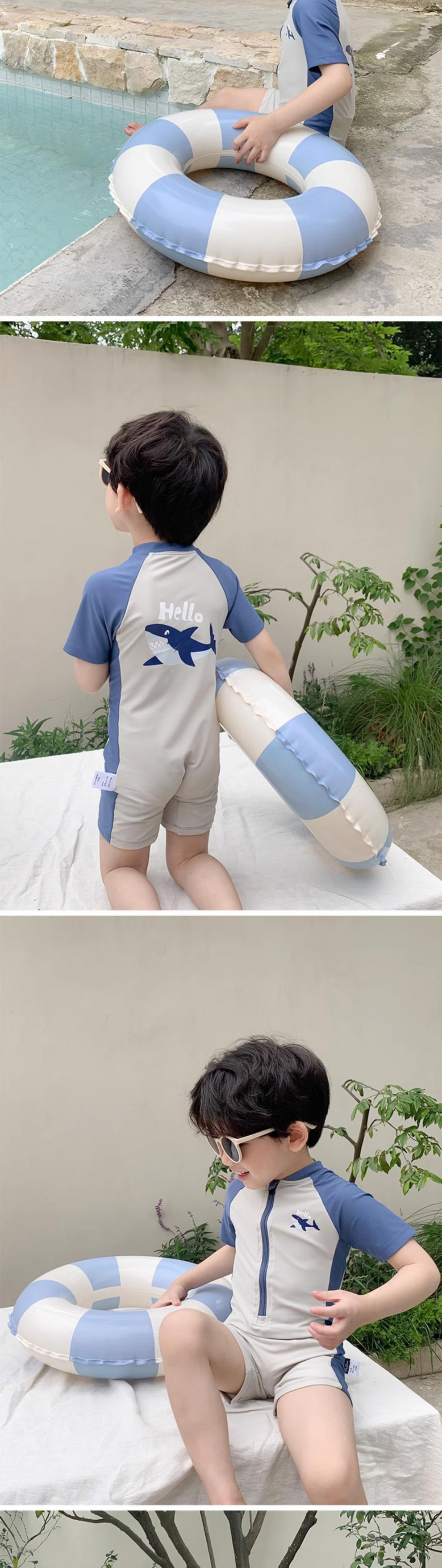 어린이 원피스 반팔 수영복 소년 여름 귀여운 상어 자외선 차단제 어린이 해변 휴가 정장 스타일