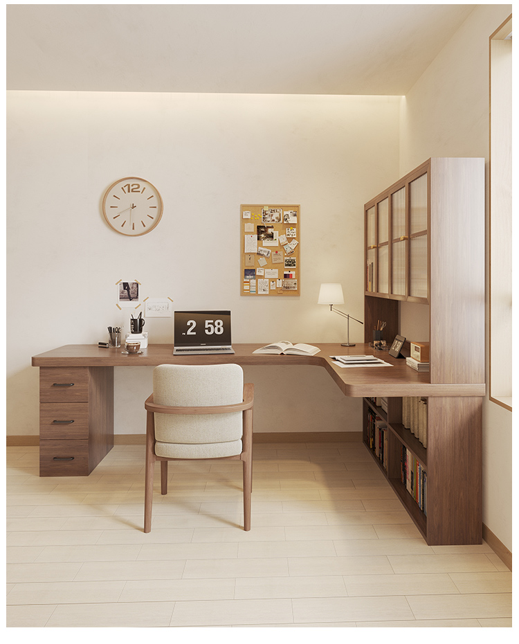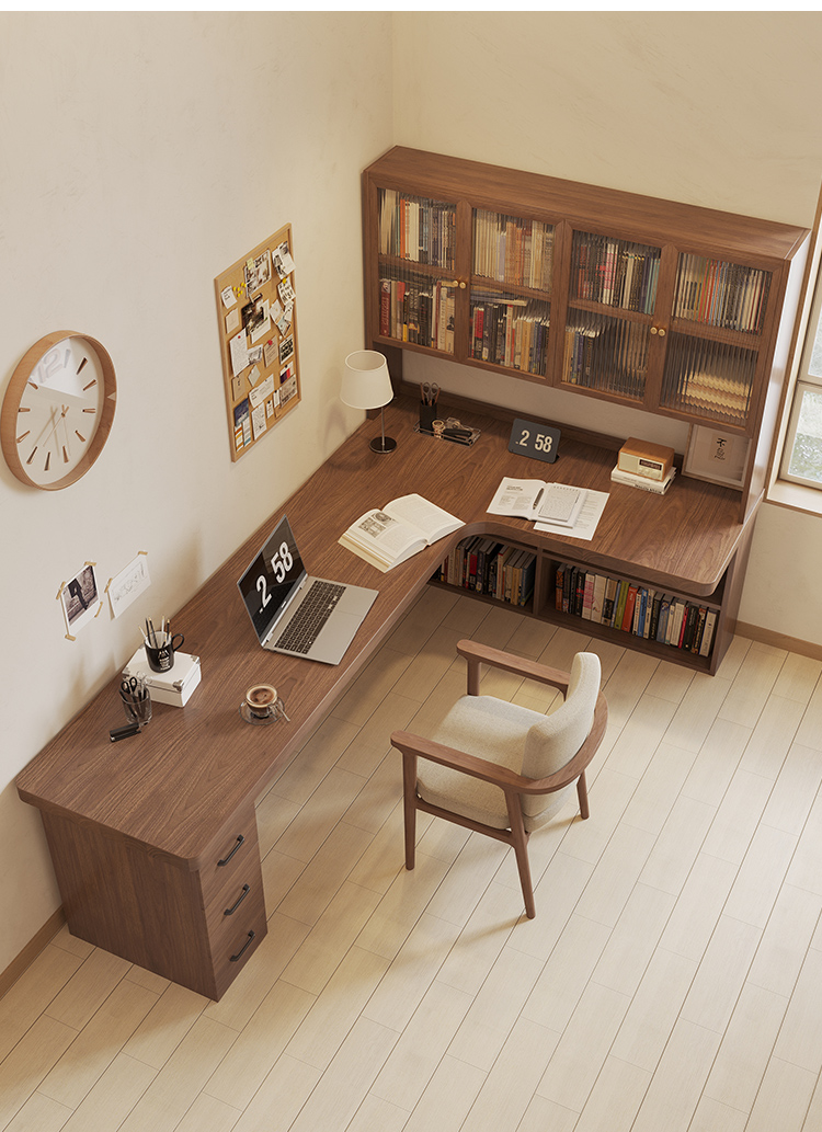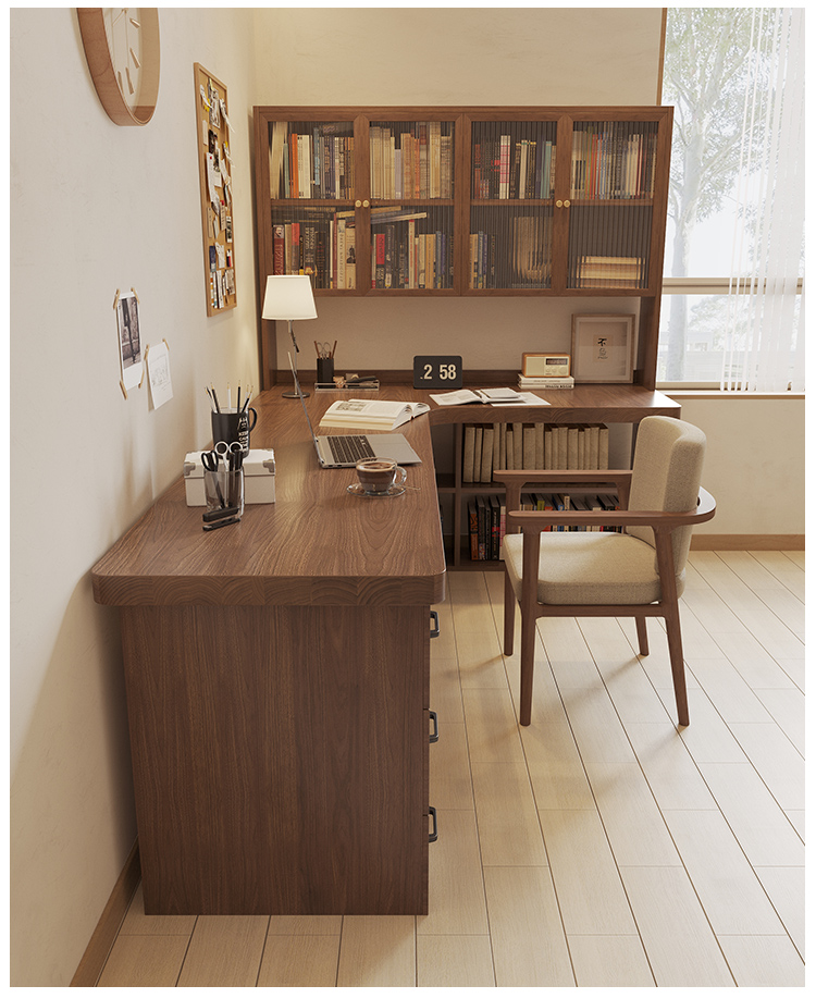 단단한 나무 책상 책장 책장 통합 코너 L 자형 테이블 침실 컴퓨터 테이블과 의자 조합 학생 학습 테이블