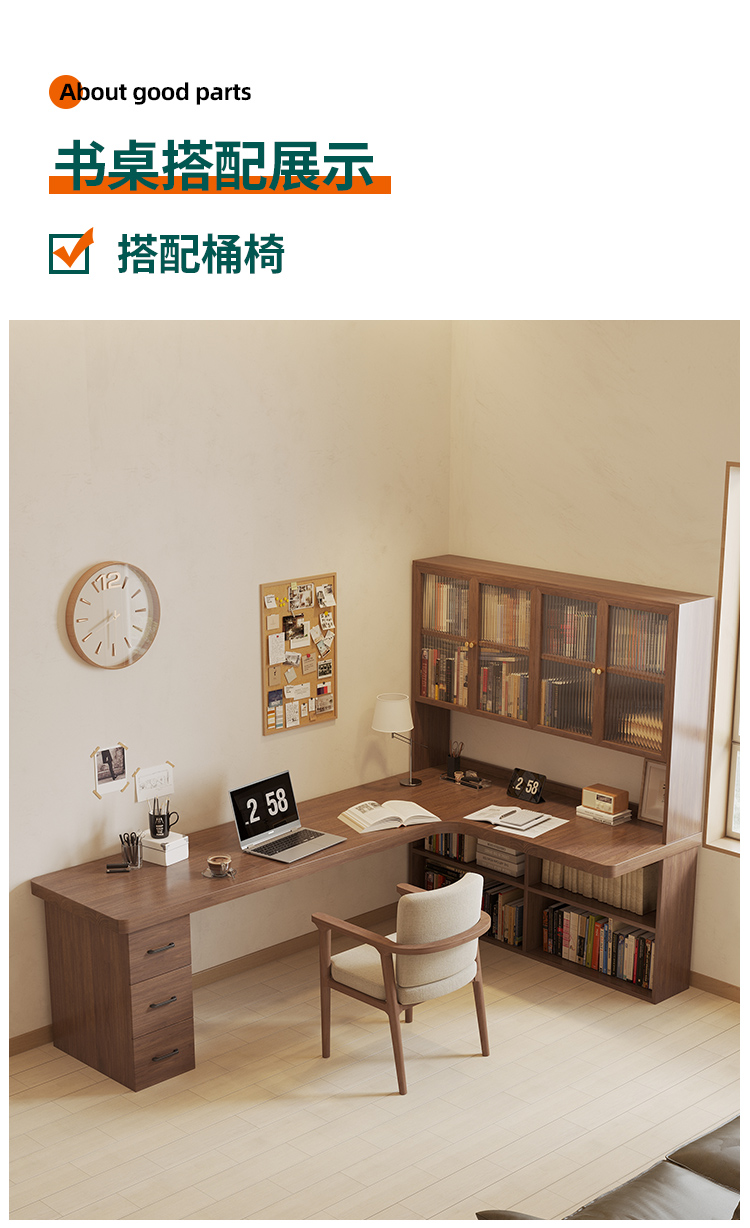 단단한 나무 책상 책장 책장 통합 코너 L 자형 테이블 침실 컴퓨터 테이블과 의자 조합 학생 학습 테이블스토어 가기