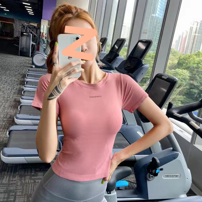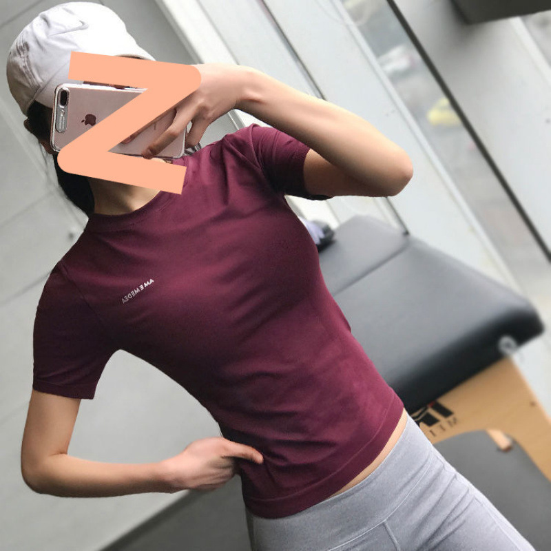 슬림하고 속건성이 뛰어난 얇은 스포츠 반팔 피트니스웨어 신축성이 뛰어나고 타이트한 런닝 티셔츠 통기성 및 땀 흡수 요가 탑 여성용스토어 가기