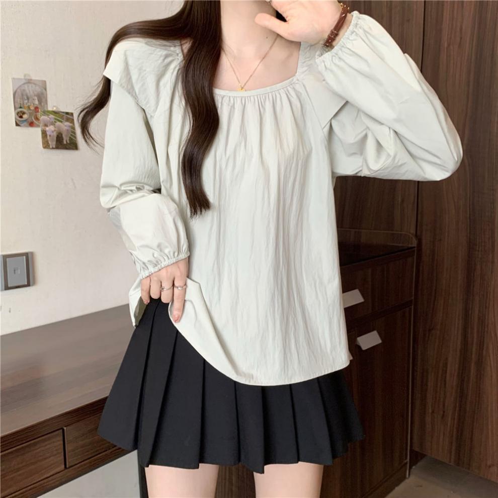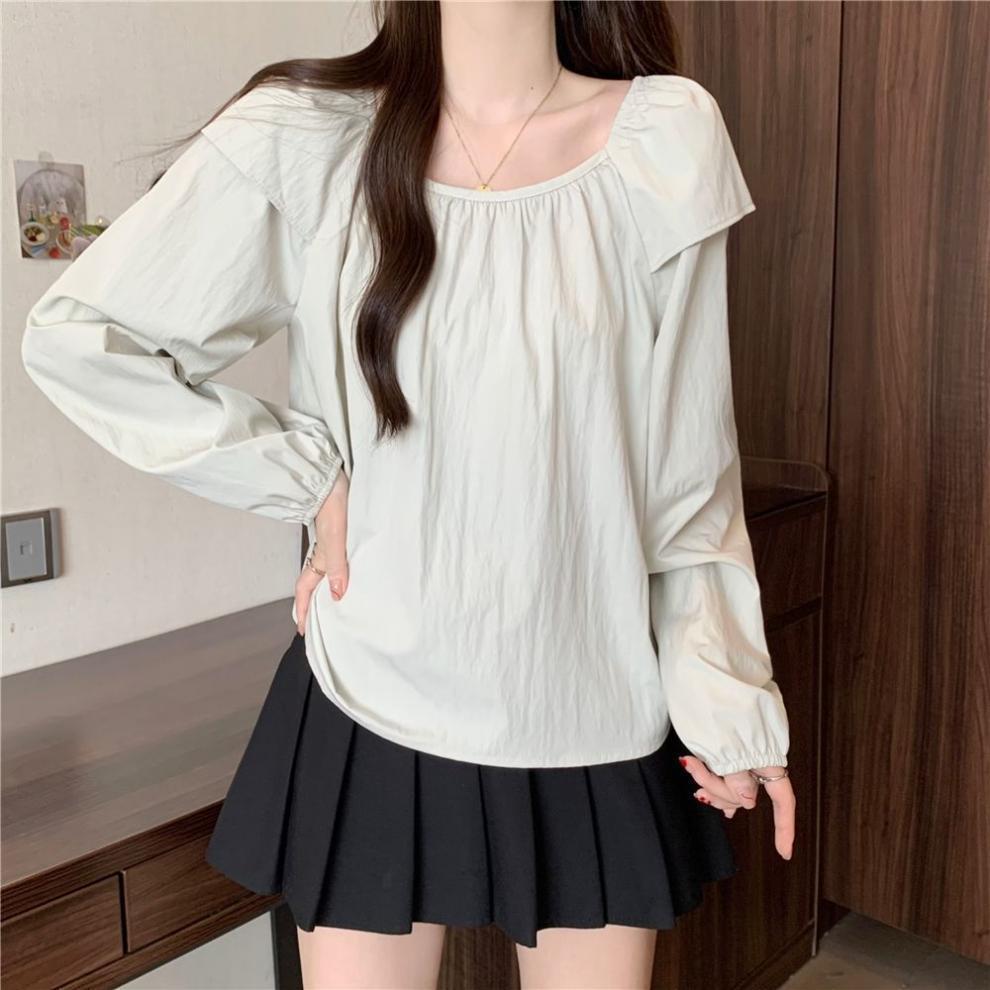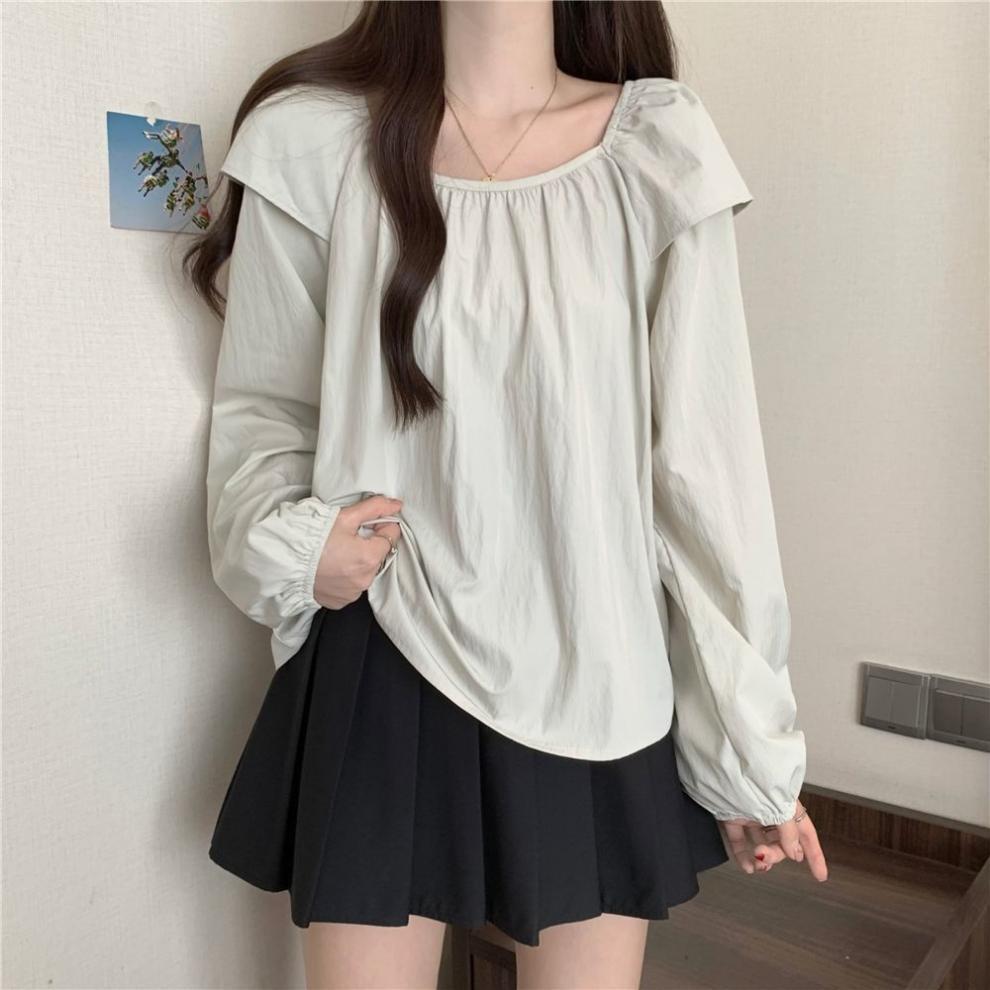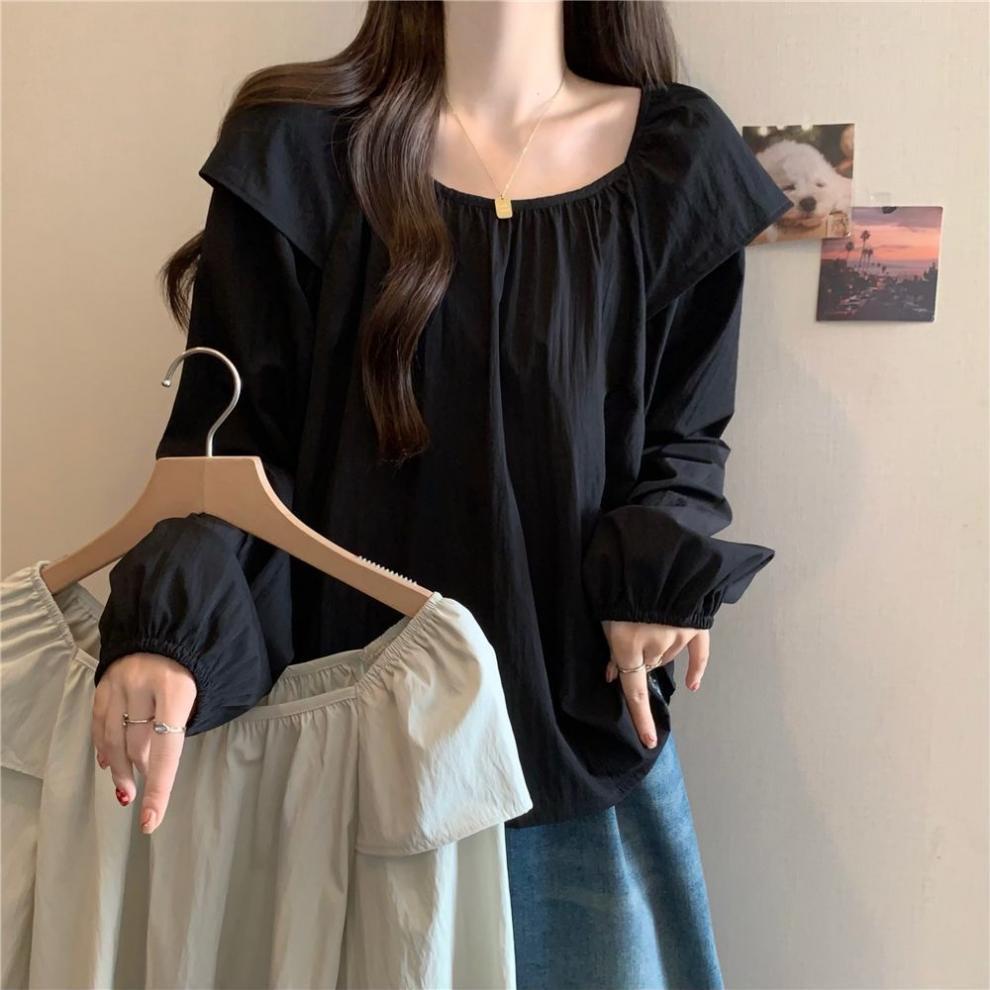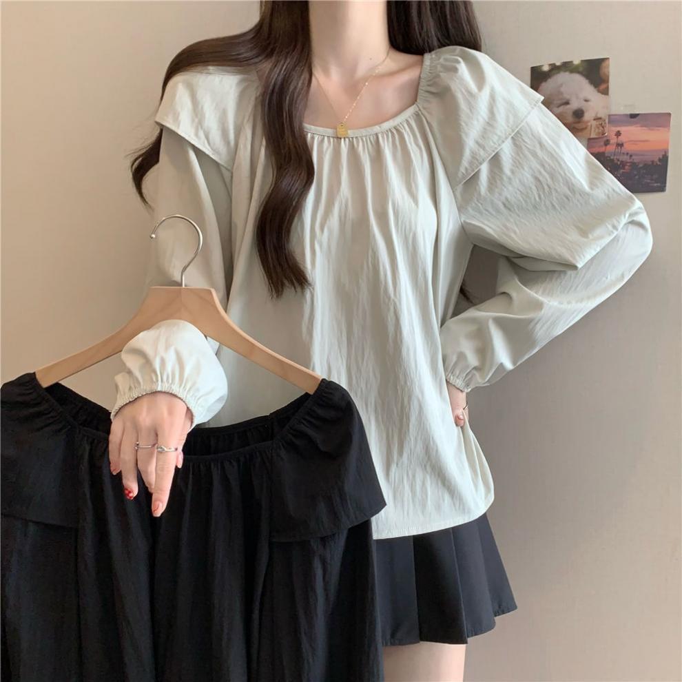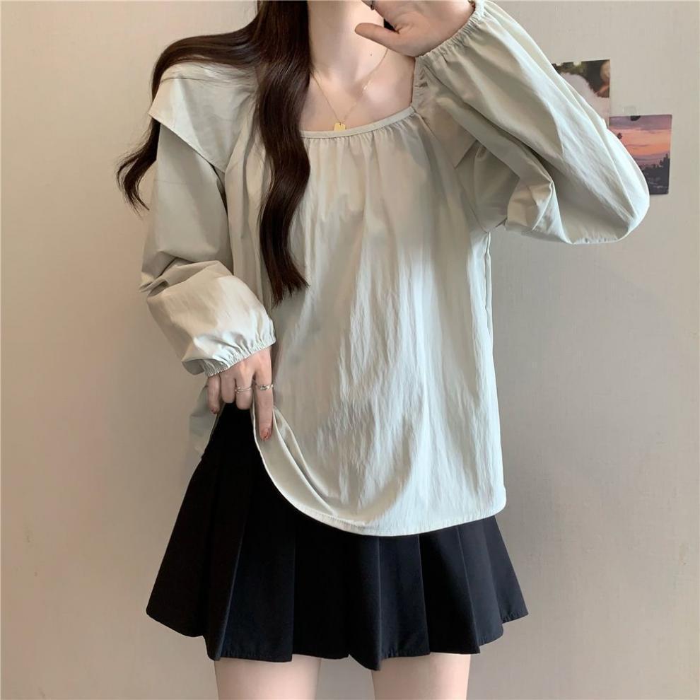플러스 사이즈 우아한 스위트 스타일 레트로 스퀘어 칼라 쉬폰 반팔 셔츠 여성용 통통한 느슨한 슬리밍 벨리 커버 올 매치 탑스토어 가기