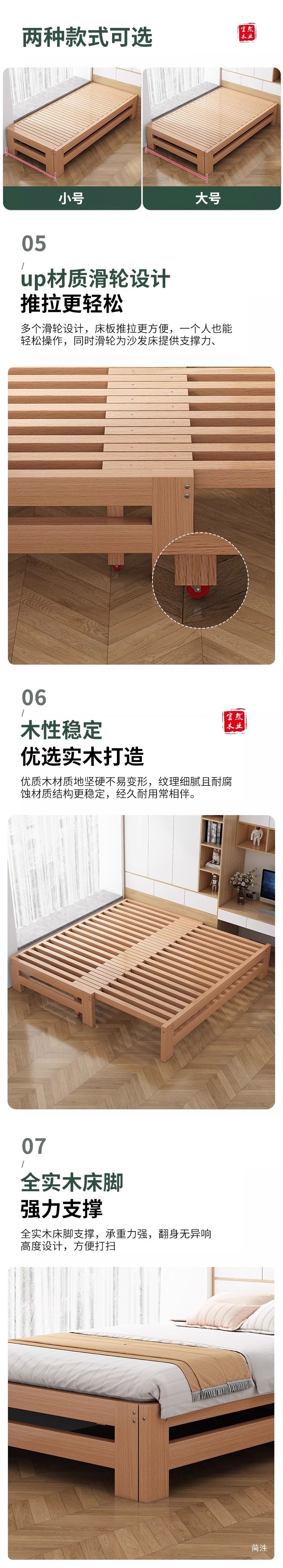 소형 아파트용 너도밤나무 소나무 옵션 풀아웃 침대, 접이식 푸시풀 소파베드, 접이식 접이식 침대스토어 가기