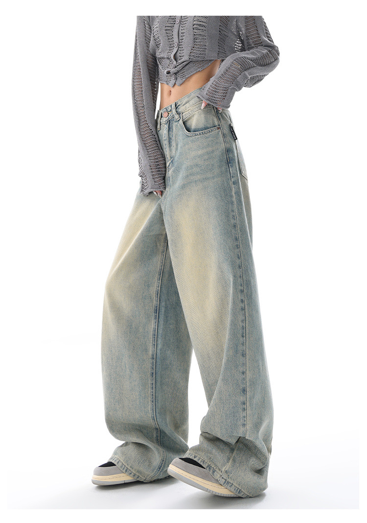 2024 초가을 새로운 복고풍 청바지 여성 아메리칸 루즈 디자인 슬리밍 바닥 길이 와이드 레그 팬츠 캐주얼 롱 팬츠
