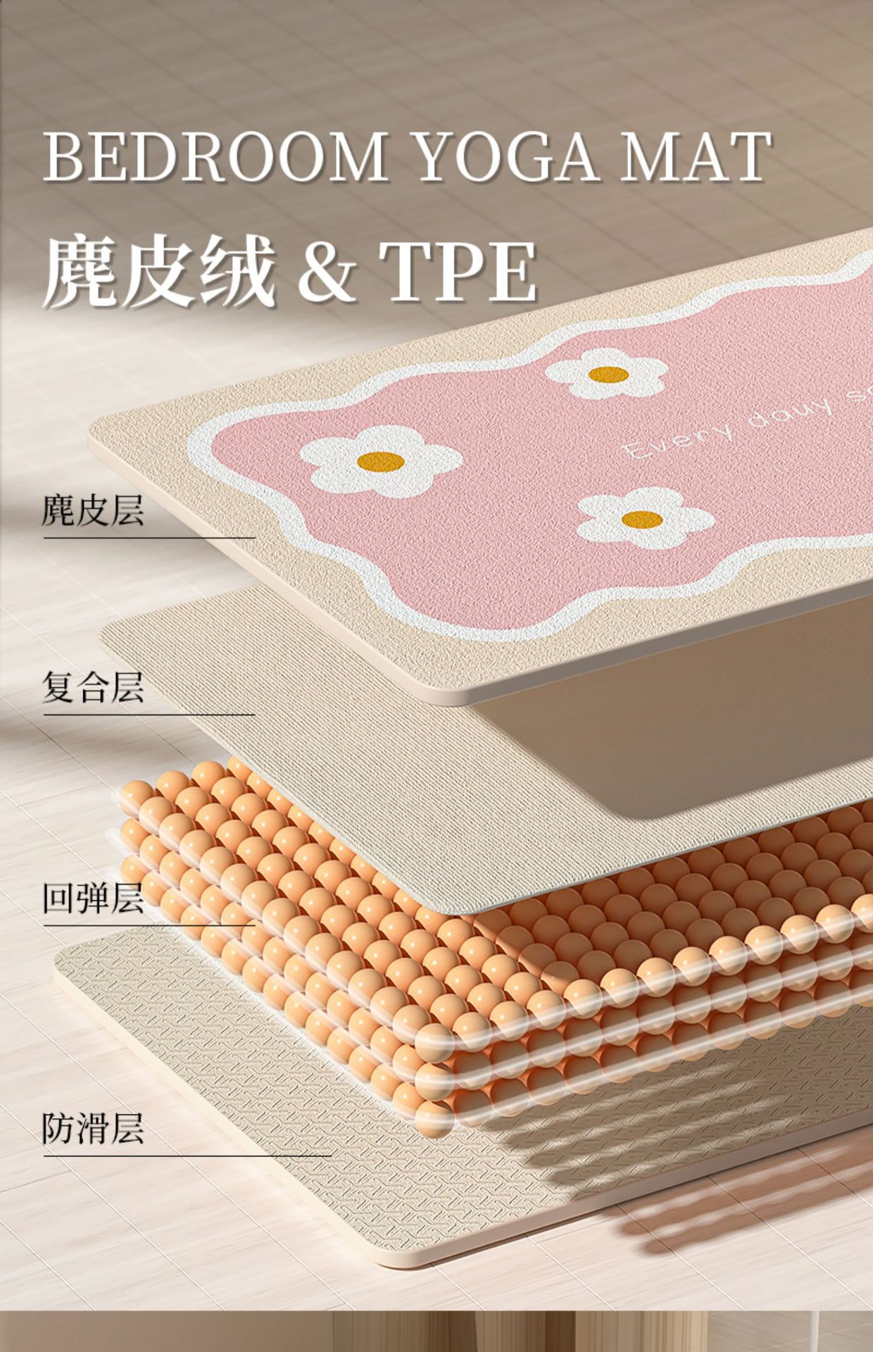 소녀들을 위한 요가 매트, 두껍고 길어지고 충격 흡수, 저소음 및 방음 매트, 피트니스 매트, 가정용 미끄럼 방지 침대 옆 바닥 매트
