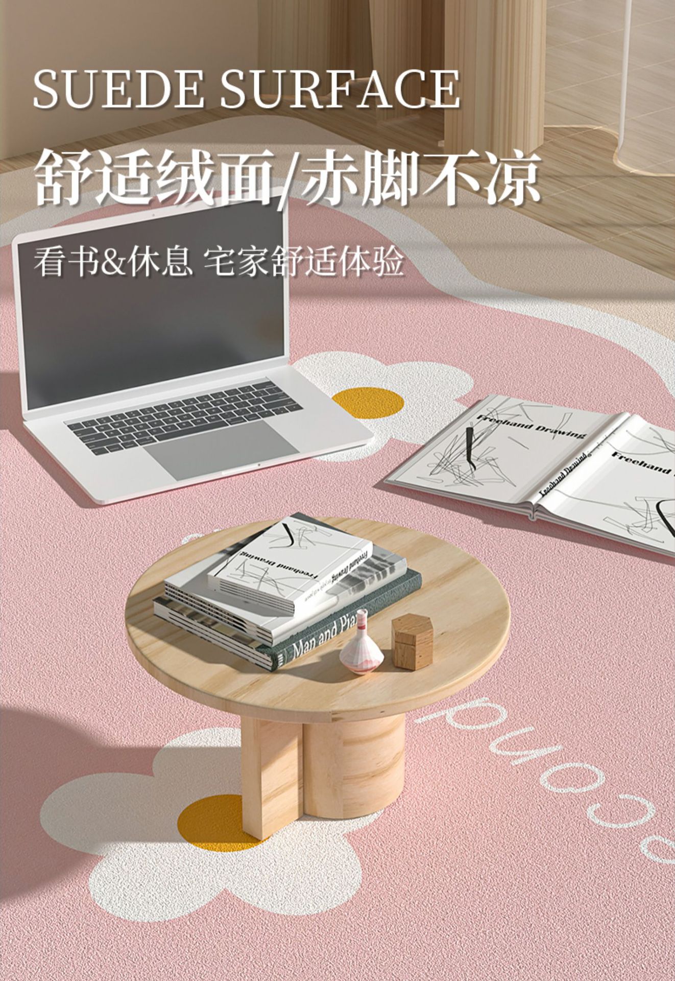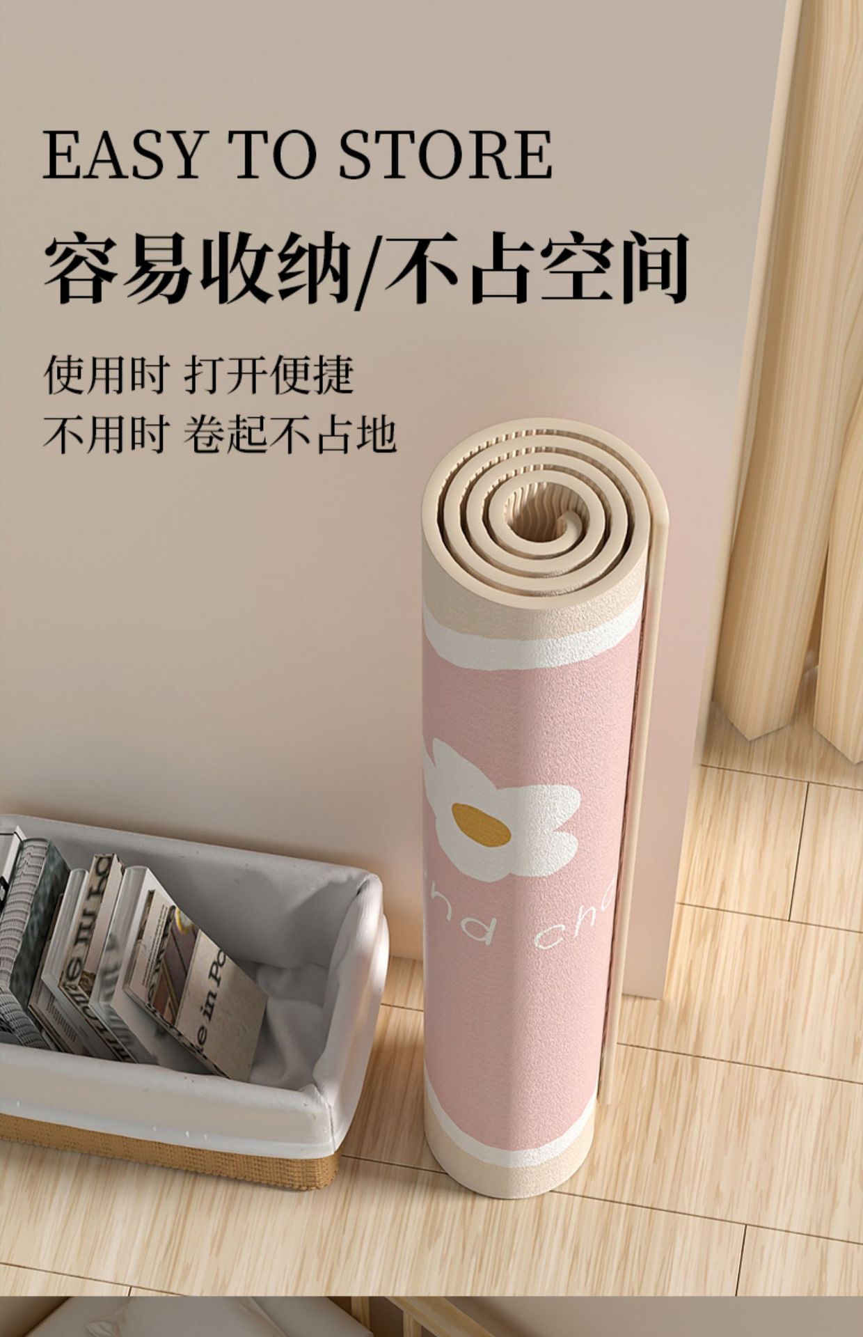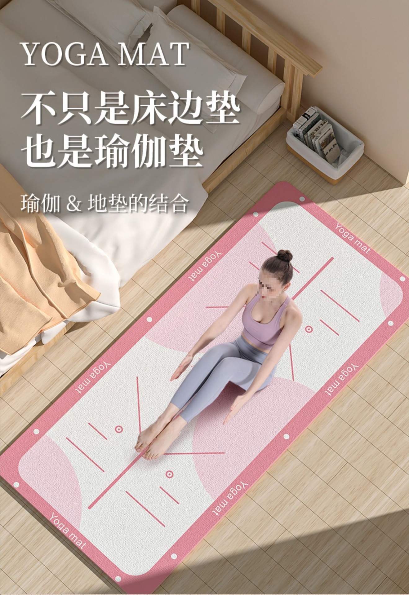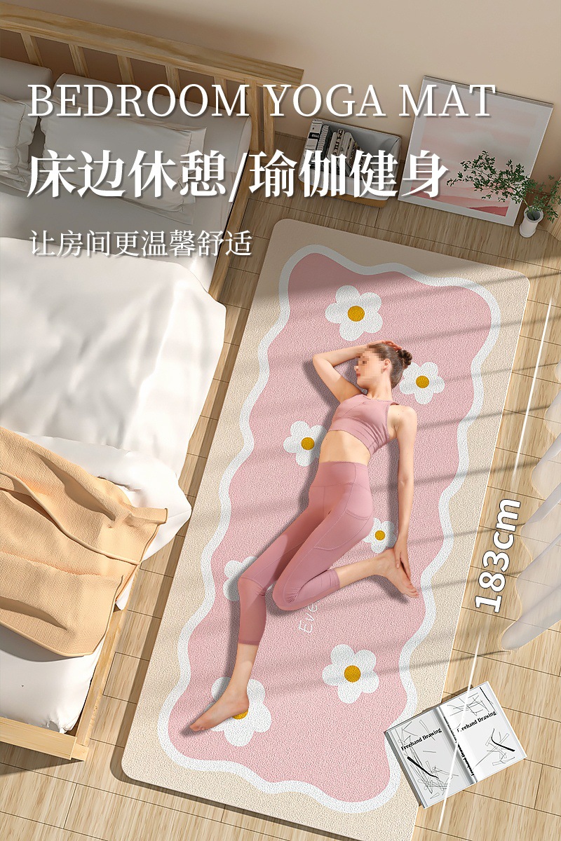 소녀들을 위한 요가 매트, 두껍고 길어지고 충격 흡수, 저소음 및 방음 매트, 피트니스 매트, 가정용 미끄럼 방지 침대 옆 바닥 매트스토어 가기