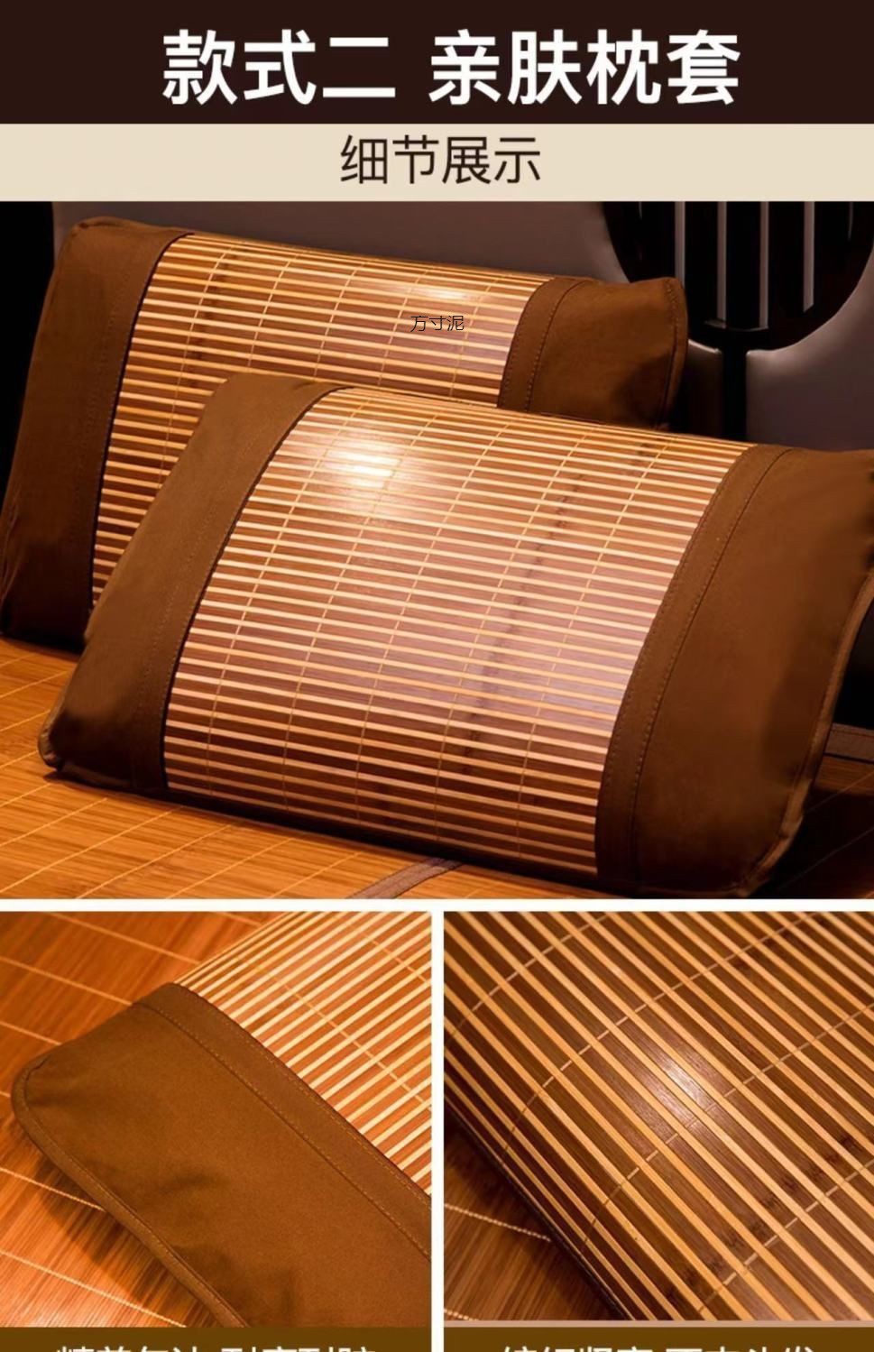 성인용 여름 대나무 매트 베개 커버, 싱글 베개 커버 한 쌍, 여름 탄화 얼음 등나무 대나무 시원한 세탁 가능한 대나무 베개 커버스토어 가기