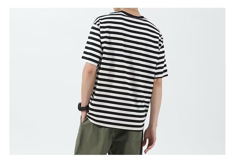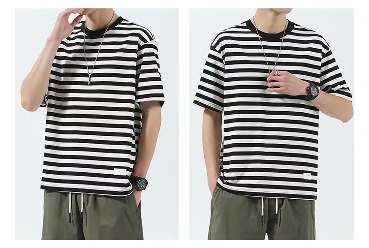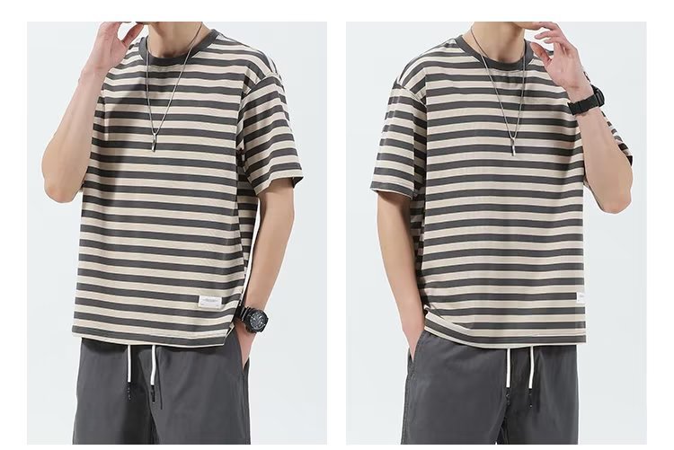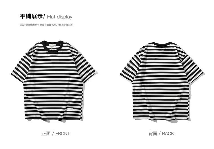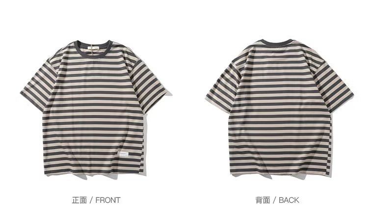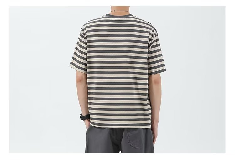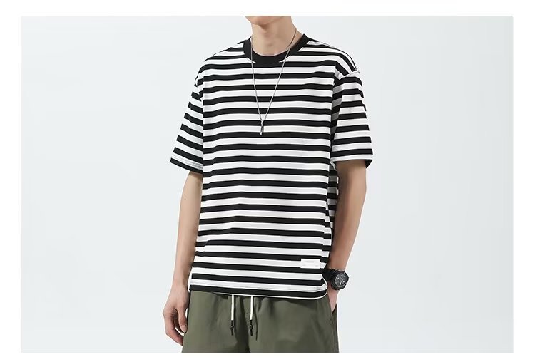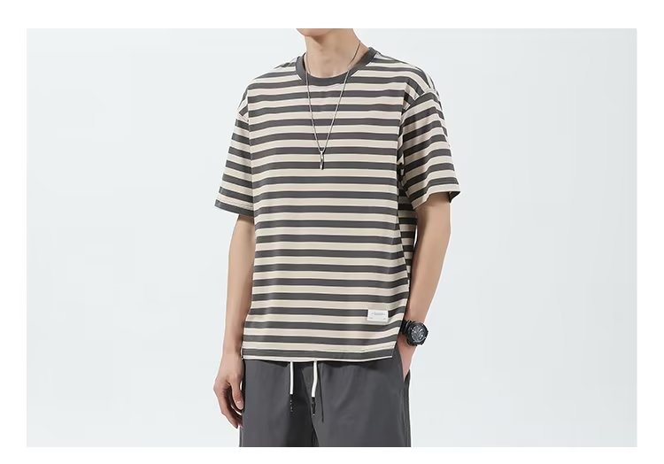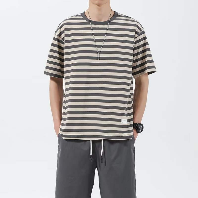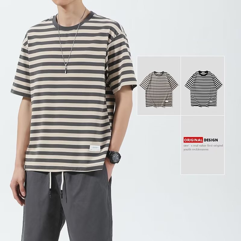 여름 남성용 스트라이프 반팔 티셔츠 루즈하고 다재다능한 트렌디 일본식 바닥 셔츠 캐주얼 트렌디 브랜드 반팔 탑