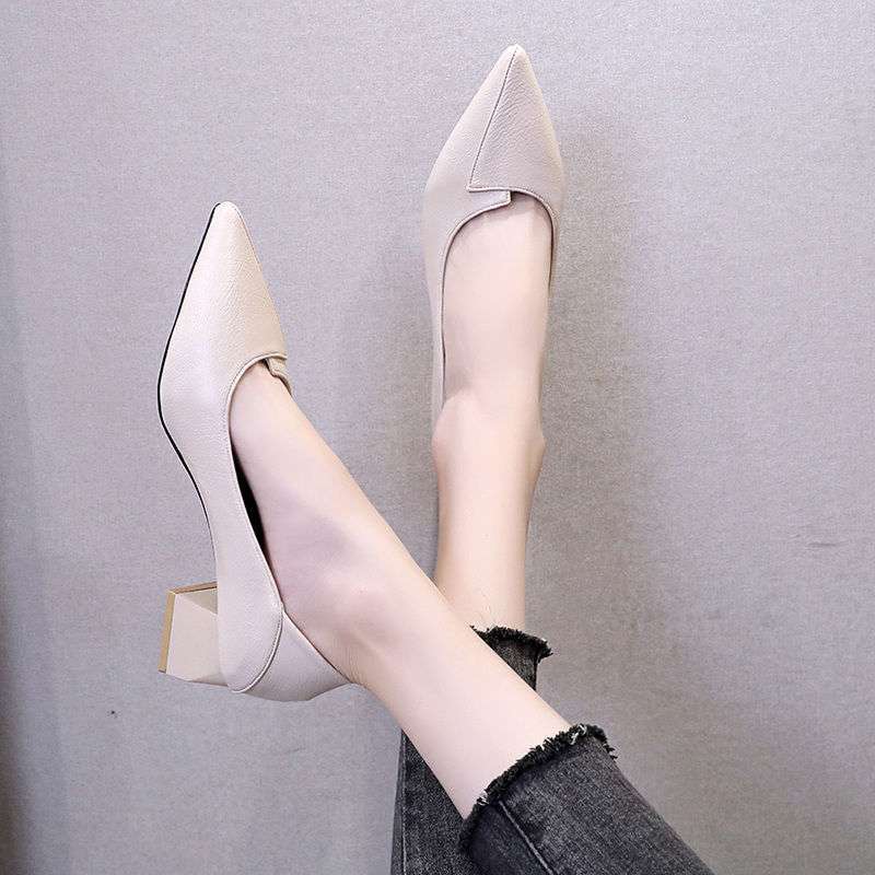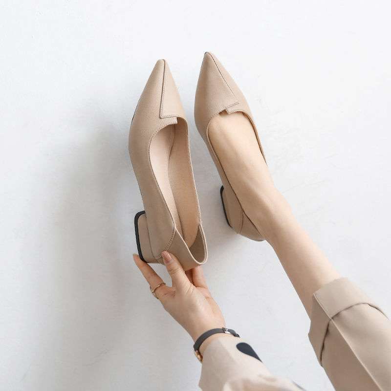 • D2-오프화이트 포인티드 힐 높이 3cm 업그레이드 버전