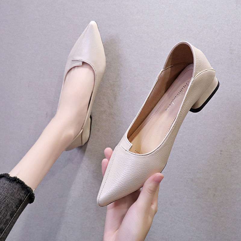 진짜 부드러운 가죽 가을 신상 여성 신발, 두꺼운 굽, 여성용 얕은 굽 하이힐, 한국식 엄마 신발, 중간 굽, 다용도 할머니 신발