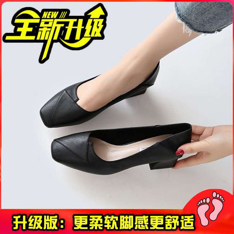 진짜 부드러운 가죽 가을 신상 여성 신발, 두꺼운 굽, 여성용 얕은 굽 하이힐, 한국식 엄마 신발, 중간 굽, 다용도 할머니 신발스토어 가기