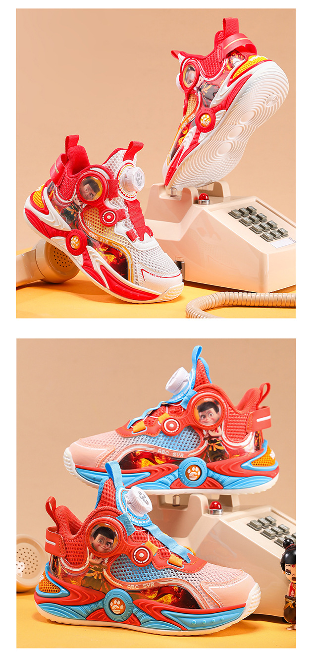 Na Zha 어린이 신발 어린이 농구 신발 여름 새 소년 단일 메쉬 중공 스포츠 신발 중대형 어린이 통기성 여행 신발스토어 가기