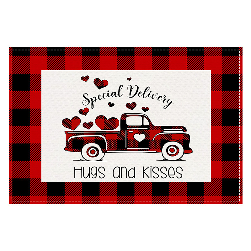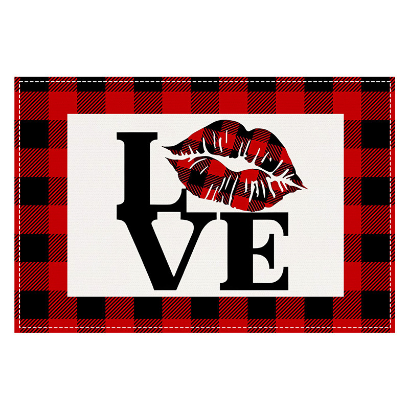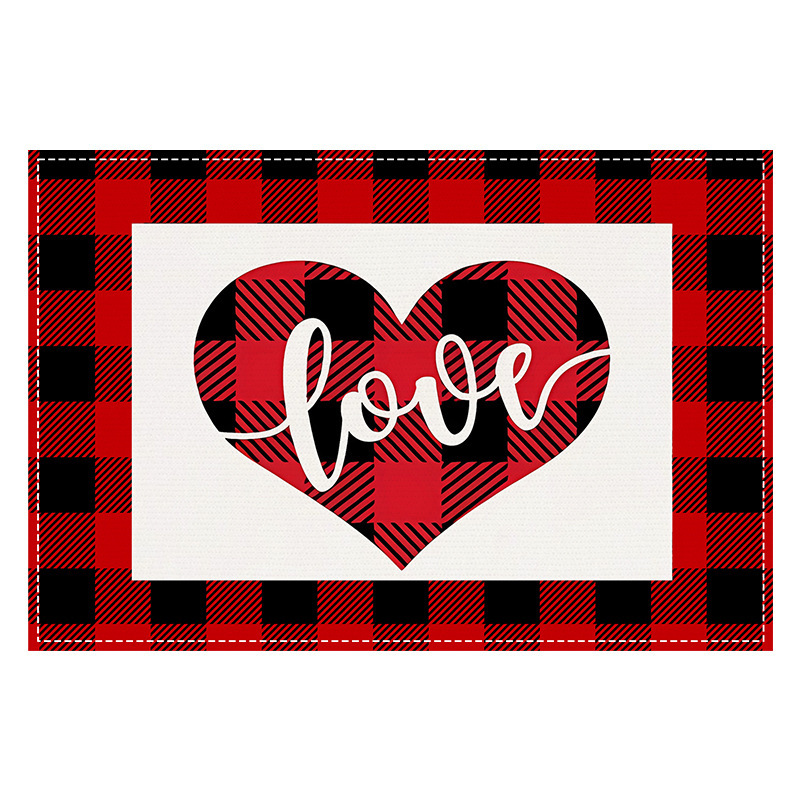 국경 간 발렌타인 데이 격자 무늬 러브 플레이스 매트 홀리데이 파티 테이블 장식 단열 매트 코스터 리넨 인쇄 테이블 매트스토어 가기