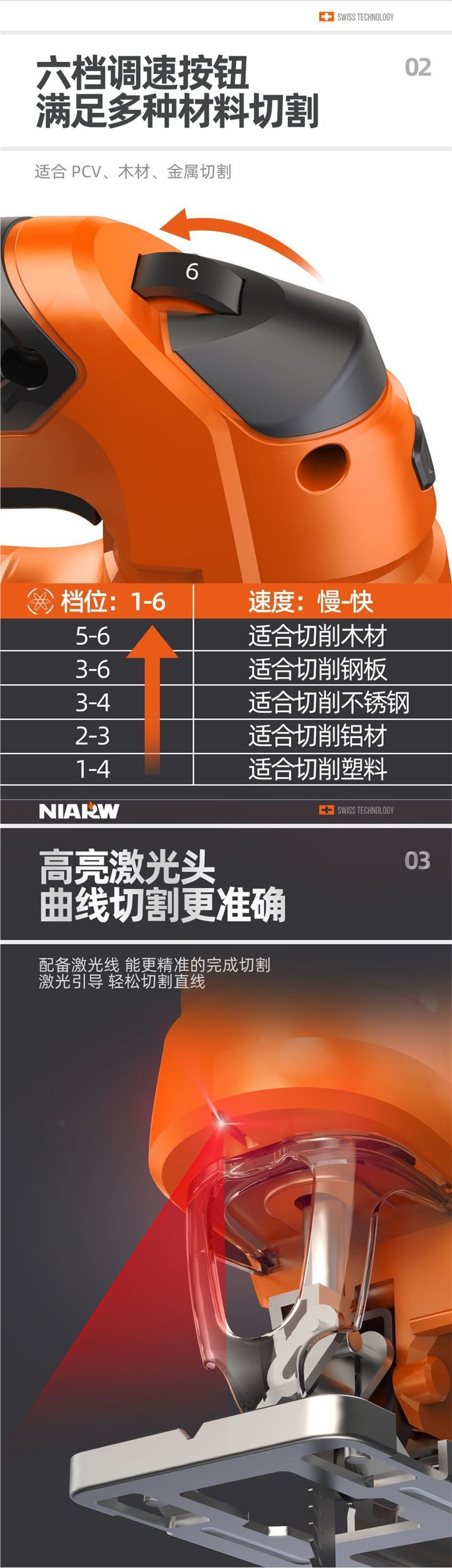 • 레이저 속도 조절 모델 + 무료 톱날 10개 + 플라스틱 상자