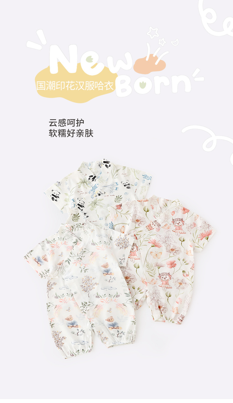 신생아 옷 여름 얇은 순수 코튼 아기 반팔 하야크 등반 옷 국가 스타일 아기 Jayshirt 파자마 여름 옷스토어 가기