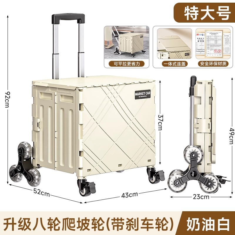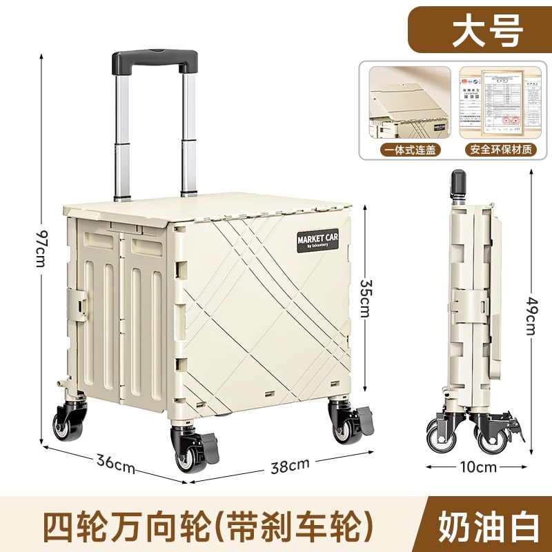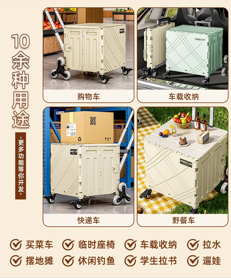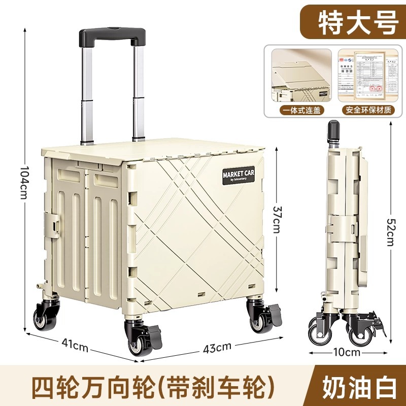 가정용 접이식 트롤리 플라스틱 대용량 악취가없는 슈퍼마켓 쇼핑 카트 휴대용 야외 캠핑카 커버