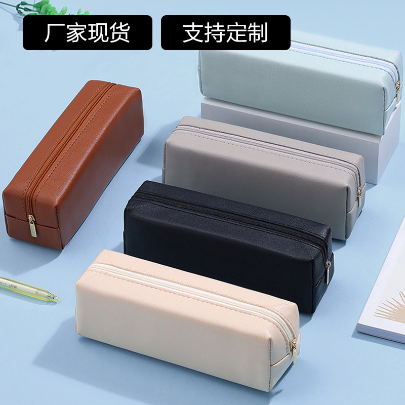 가죽 입체 연필 가방, 간단한 지퍼 보관 가방, 대용량 방수 휴대용 기능 가죽 문구 가방, 인쇄 가능스토어 가기