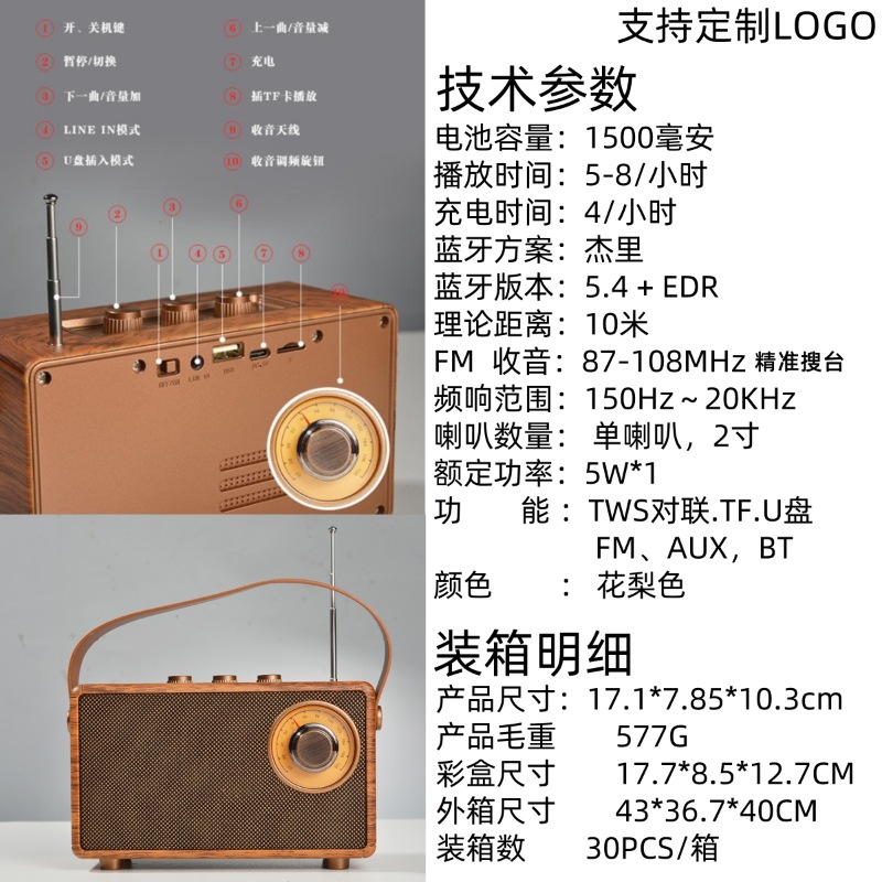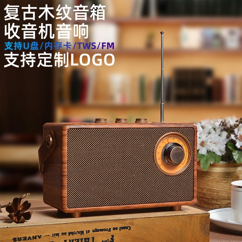 국경 새로운 휴대용 라디오 복고풍 블루투스 스피커 무선 미니 휴대용 작은 스피커 우드 그레인 카드 스테레오스토어 가기