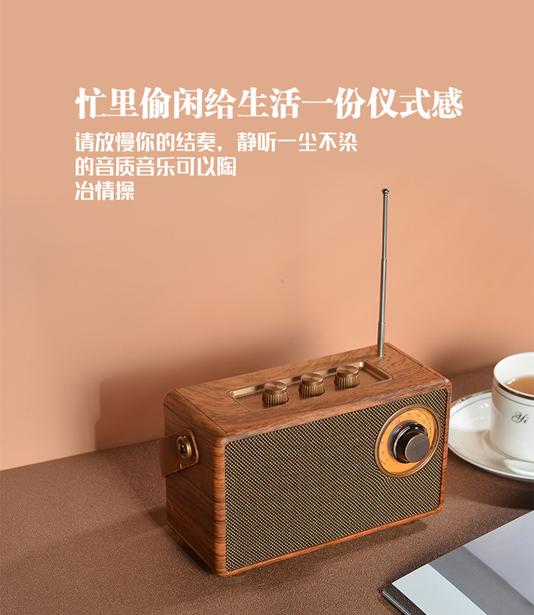 국경 새로운 휴대용 라디오 복고풍 블루투스 스피커 무선 미니 휴대용 작은 스피커 우드 그레인 카드 스테레오