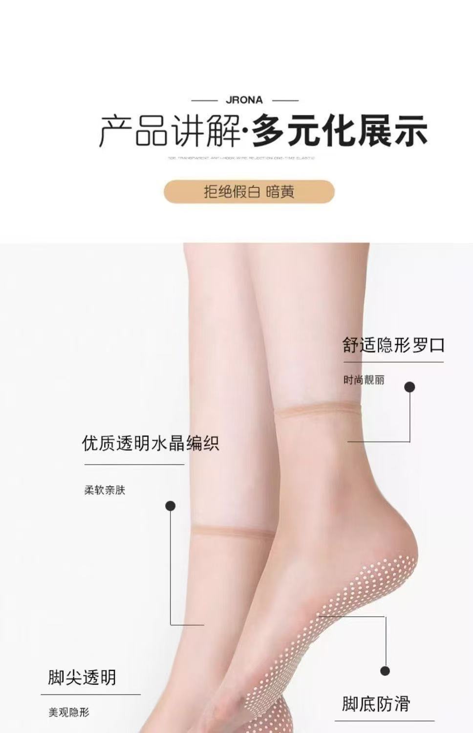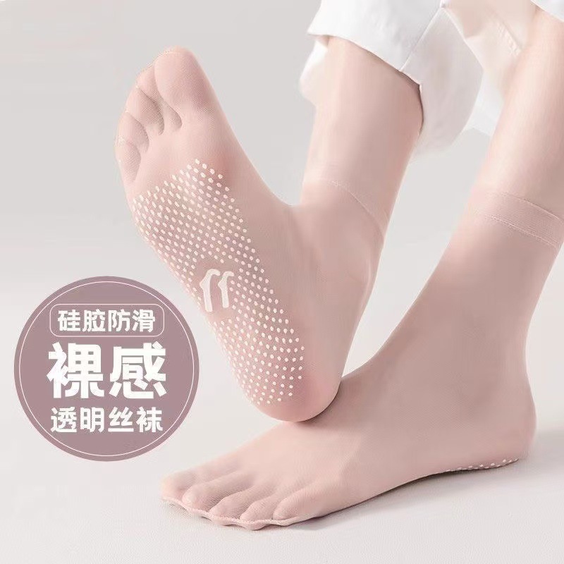 크리스탈 디스펜싱 스타킹 여성용 짧은 양말 여름 얇은 무봉제 투명 발가락 투명 크리스탈 실크 초박형 중간 튜브(제조업체