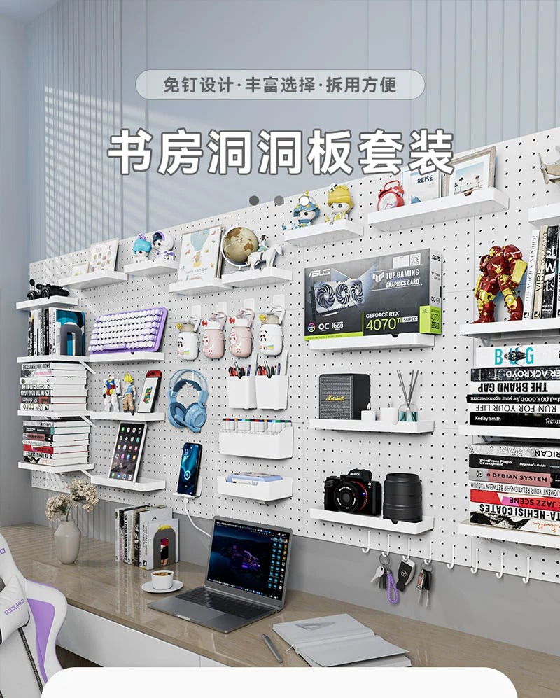 데스크탑 홀 보드 스토리지 랙 두꺼운 학생 기숙사 책상 수직 저장 파티션 펀치 없는 벽 장착 선반